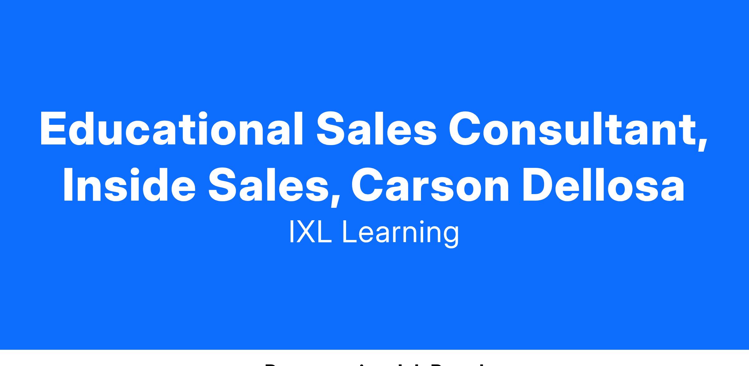 IXL Learning, developer of personalized learning products used by millions of people globally, is seeking an upbeat, focused, high-energy individual to join our Carson Dellosa Inside Sales team. Carson Dellosa Education, now a part of the IXL family of brands, was founded in 1977 by two teachers. Over forty years later, we remain committed to creating educational solutions for children, teachers, and parents—wherever they are needed. #LI-TM1