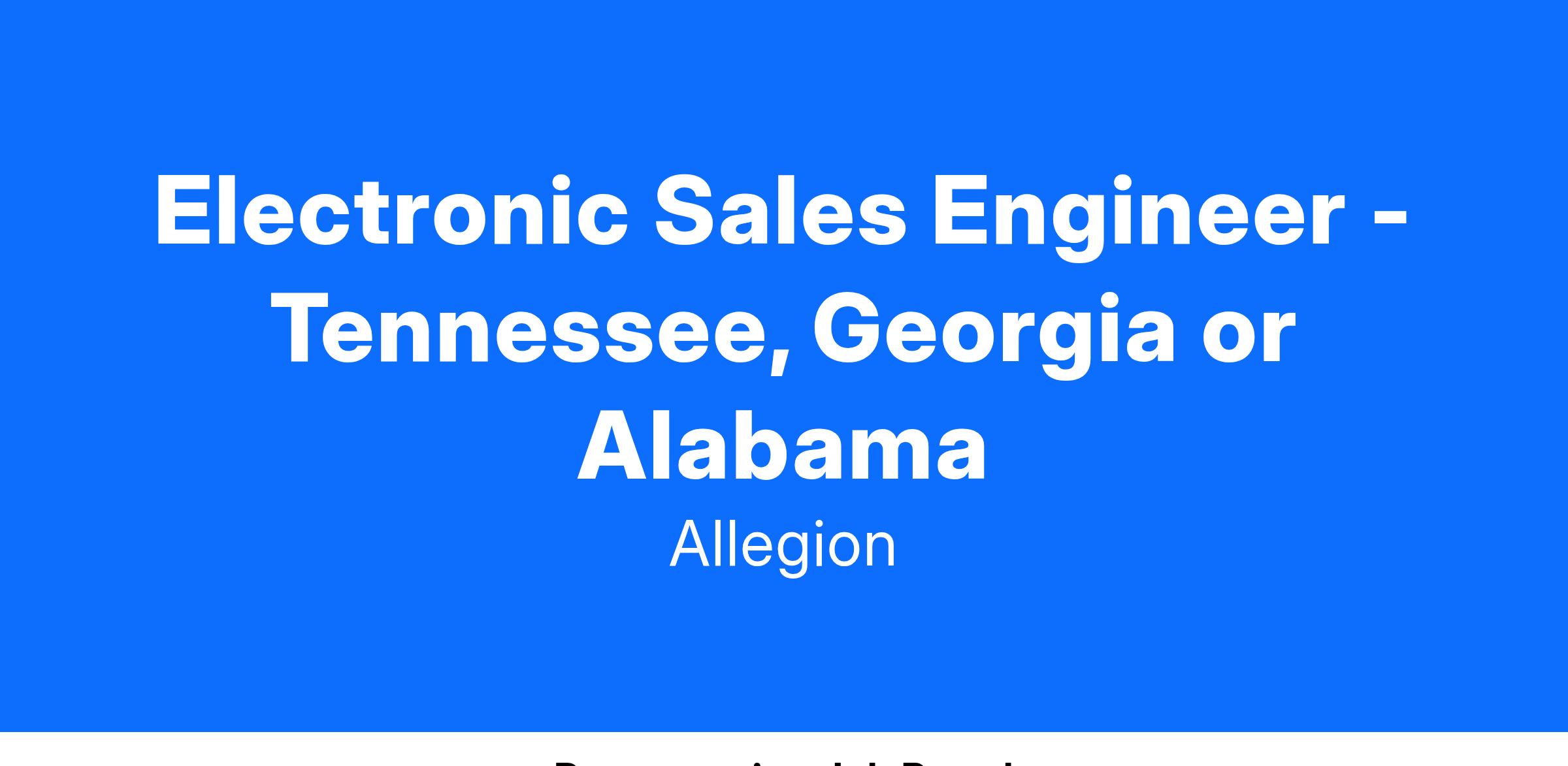 Electronic Sales Engineer – Tennessee, Georgia or Alabama