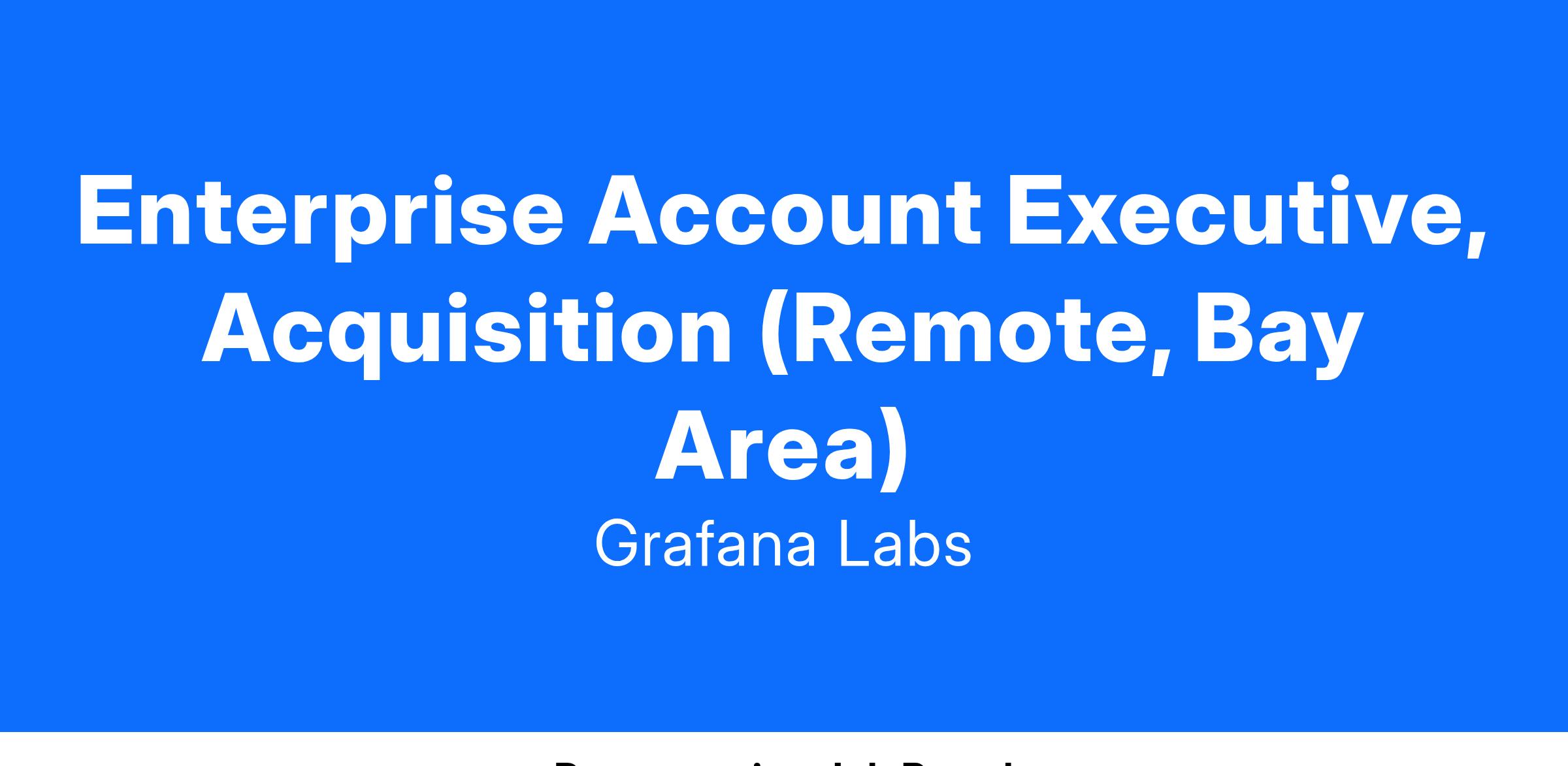 Grafana Labs is looking for an Enterprise Account Executive who will be responsible for prospecting and closing new business across the Bay Area region. You will identify, nurture and close opportunities with new customers. You will manage forecasts and track customer data. We're strong proponents of a consultative sales approach - learn about the customer's needs first before talking about our products. Your expertise will be critical in helping articulate the value of our products, work with the customer during the trial phase and hand off a strong relationship to our Customer Success team.