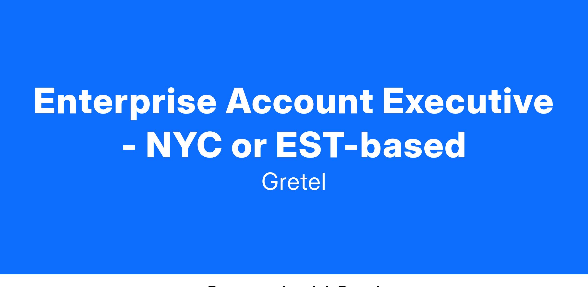 Preference will be given to applicants within the NYC-metro area, then secondly to those based in Eastern timezone. While Gretel is remote-first, our enterprise account executives often attend in-person meetings, conferences, and networking events and for this particular role, being based within regular commuting distance of NYC is preferred.