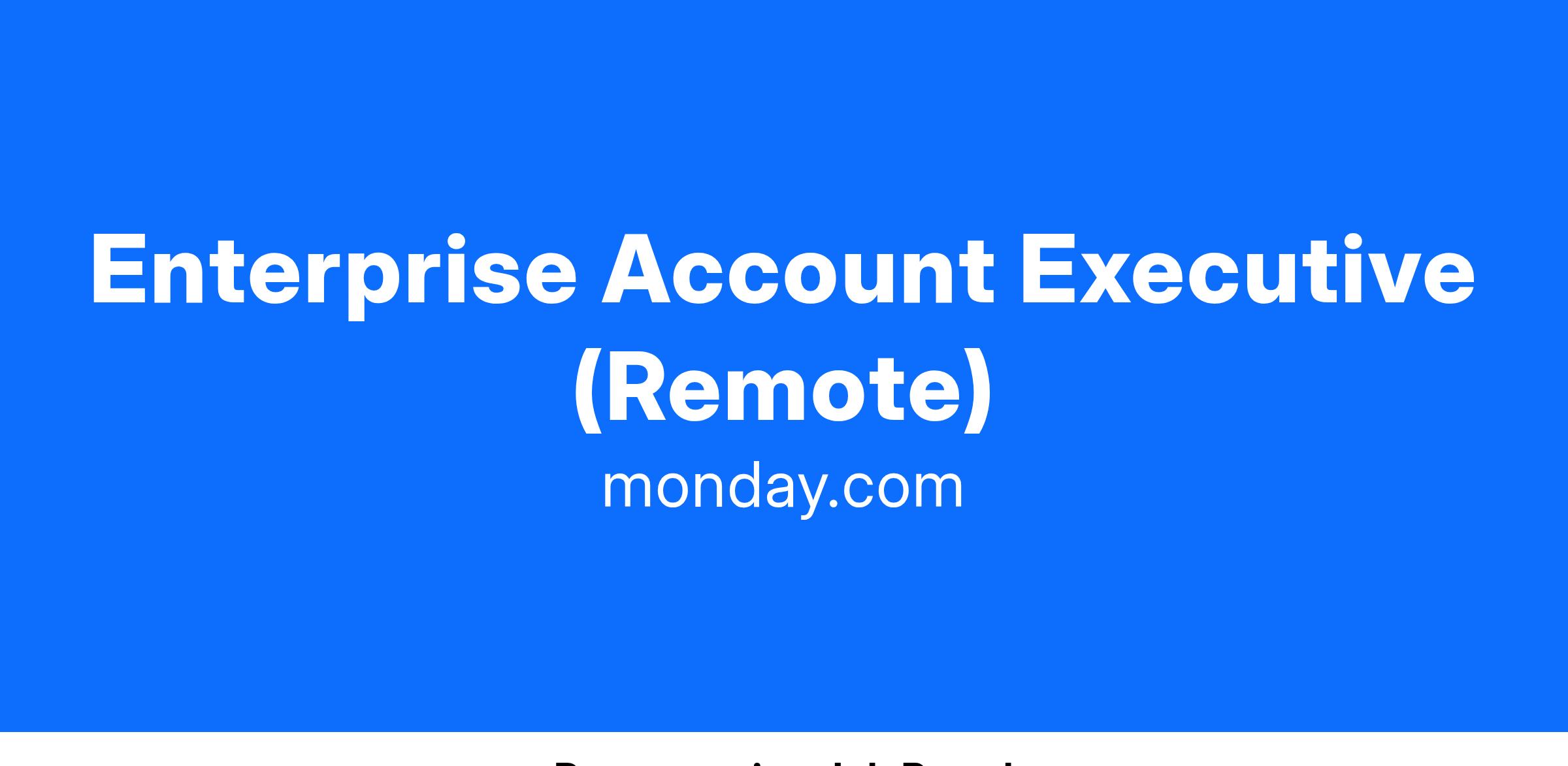 We're looking for an Enterprise Account Executive to join our Enterprise Consulting team here in the US! There are a few things we take really seriously here at monday.com: building an amazing product and providing the best possible service to our customers. Our clients love our product, and it's incredibly unique (and fun) to walk our clients to success using our platform.
