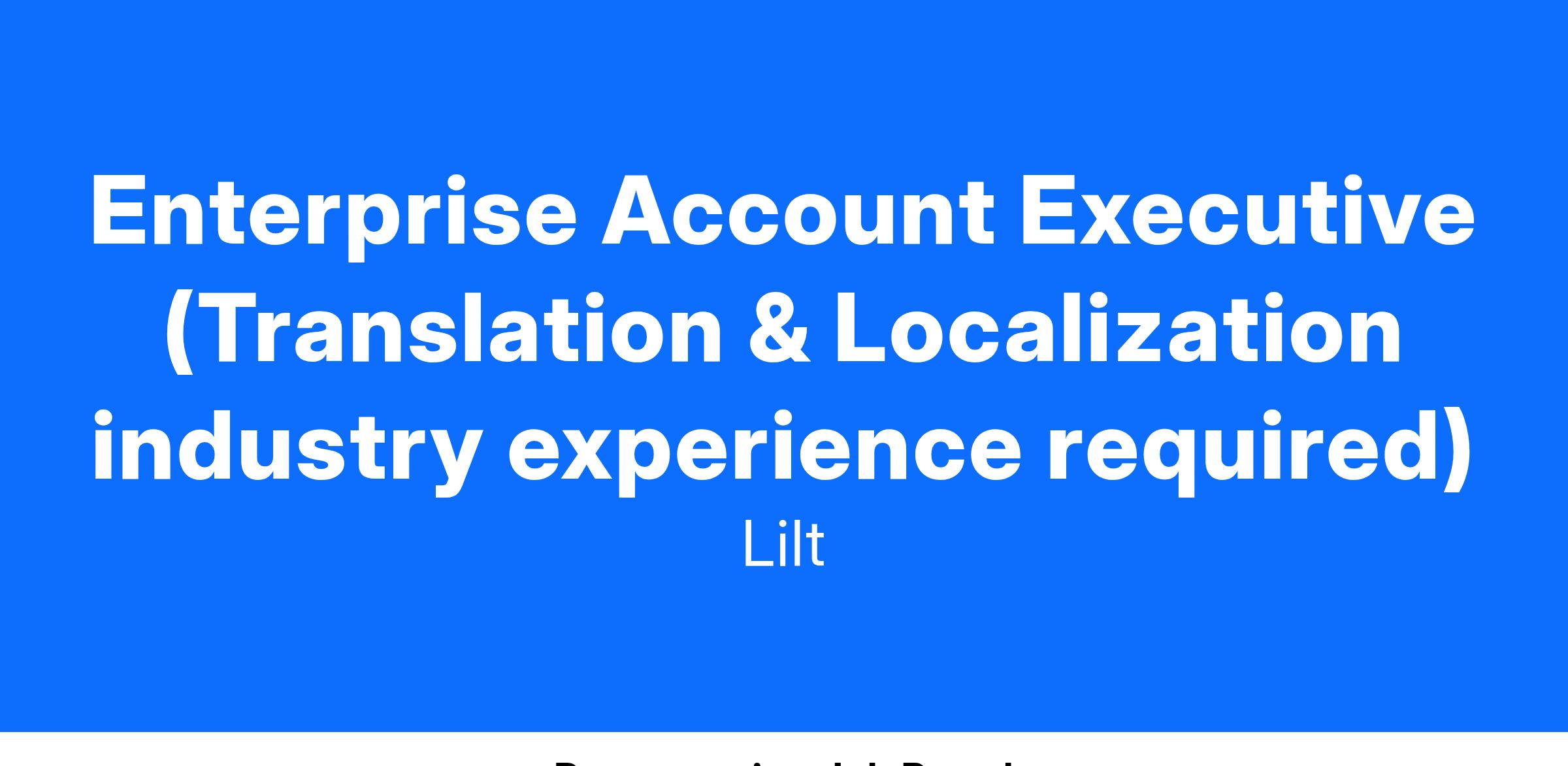 LILT is growing quickly and the Enterprise Account Executive role is core to our success. We are looking for a driven, hard-working, and adaptable sales professional who will propel us to new milestones by leveraging their skills, qualities, and experiences to grow our commercial footprint. You will achieve this by selling our platform and services to new customers while also supporting our Strategic Account Executives to expand partnerships with larger customers.