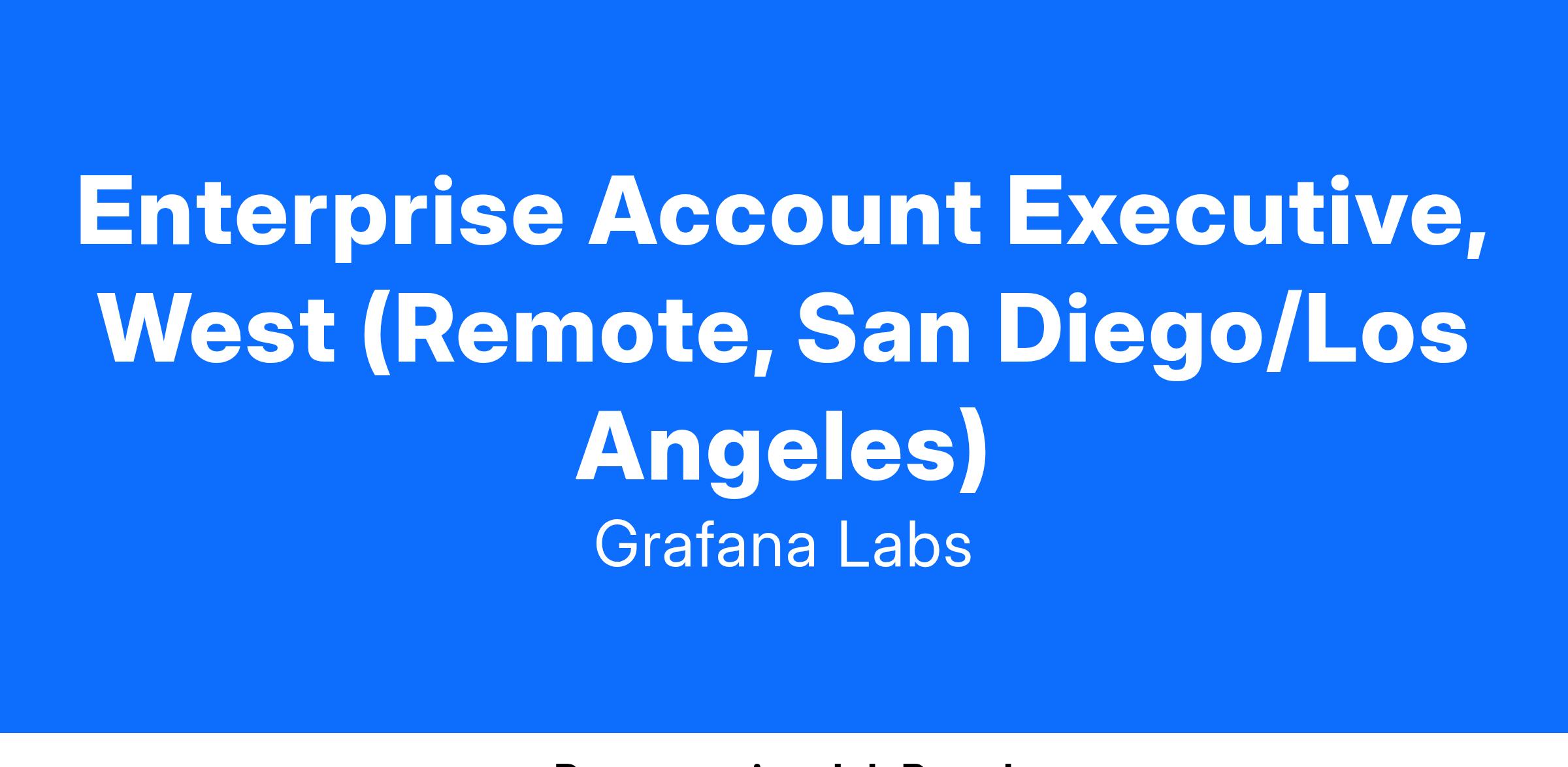 Grafana Labs is looking for an Enterprise Account Executive who will be responsible for prospecting and closing new business across the West Coast region. You will identify, nurture and close opportunities with both new and existing customers. You will manage forecasts and track customer data. We're strong proponents of a consultative sales approach - learn about the customer's needs first before talking about our products. Your expertise will be critical in helping articulate the value of our products, work with the customer during the trial phase and hand off a strong relationship to our Customer Success team.