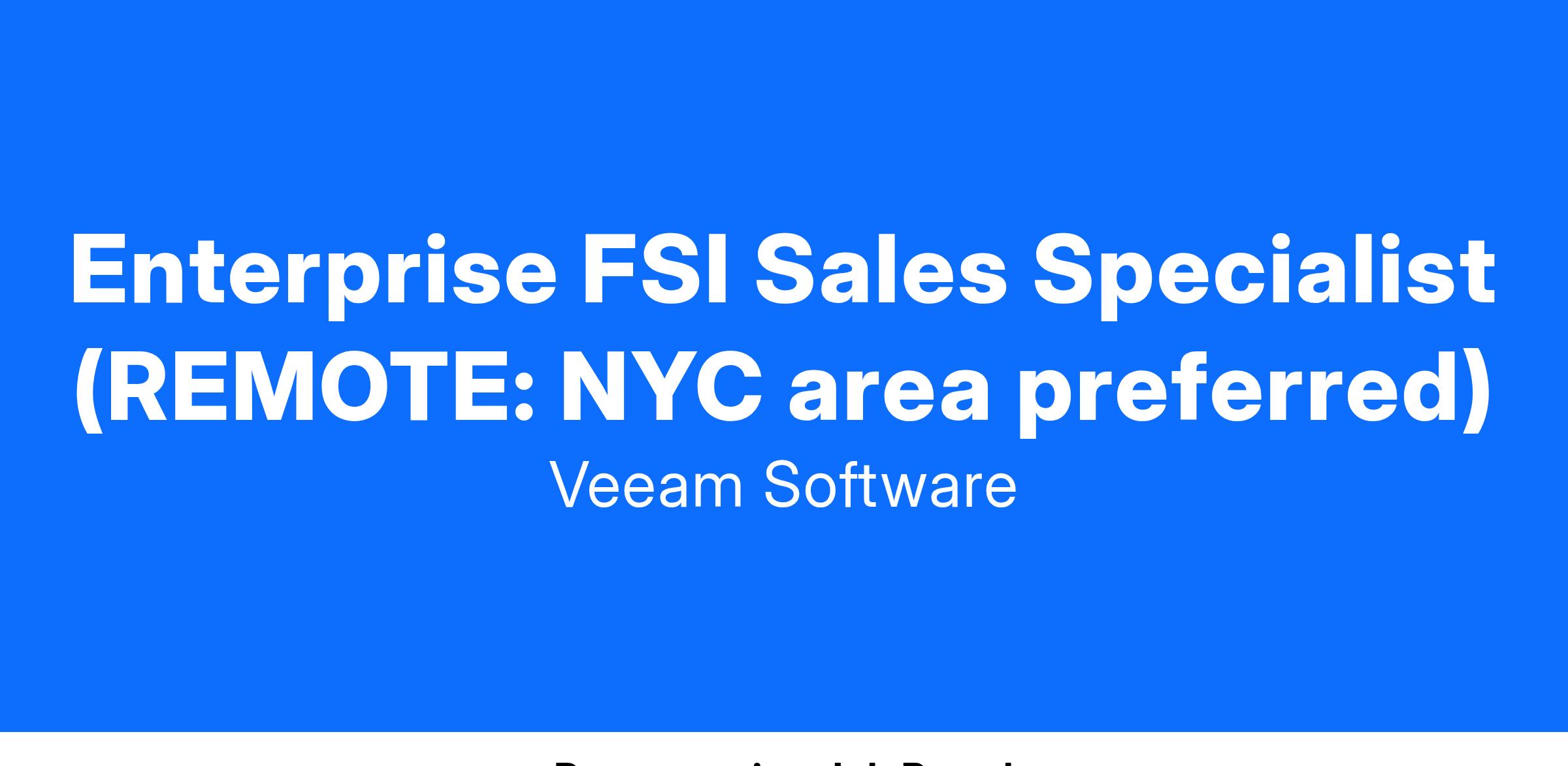 - Prior experience working in large organizations withing financial services or selling to financial institutions is highly preferred.
