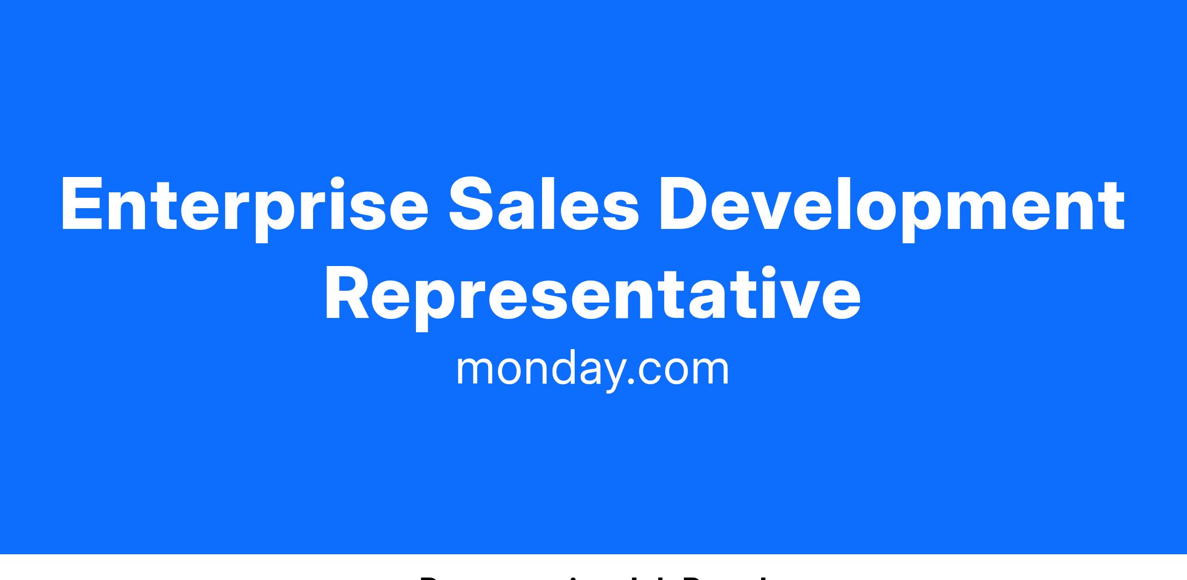 We’re seeking a dynamic Enterprise Sales Development Representative to join monday.com. In our fast-paced and innovative environment, we value individuals who thrive on challenges, are eager to learn, and want to make a meaningful impact. The Enterprise SDR will be a product expert responsible for engaging outbound prospects and leveraging existing accounts to generate valuable pipeline for our Enterprise Account Executive team.