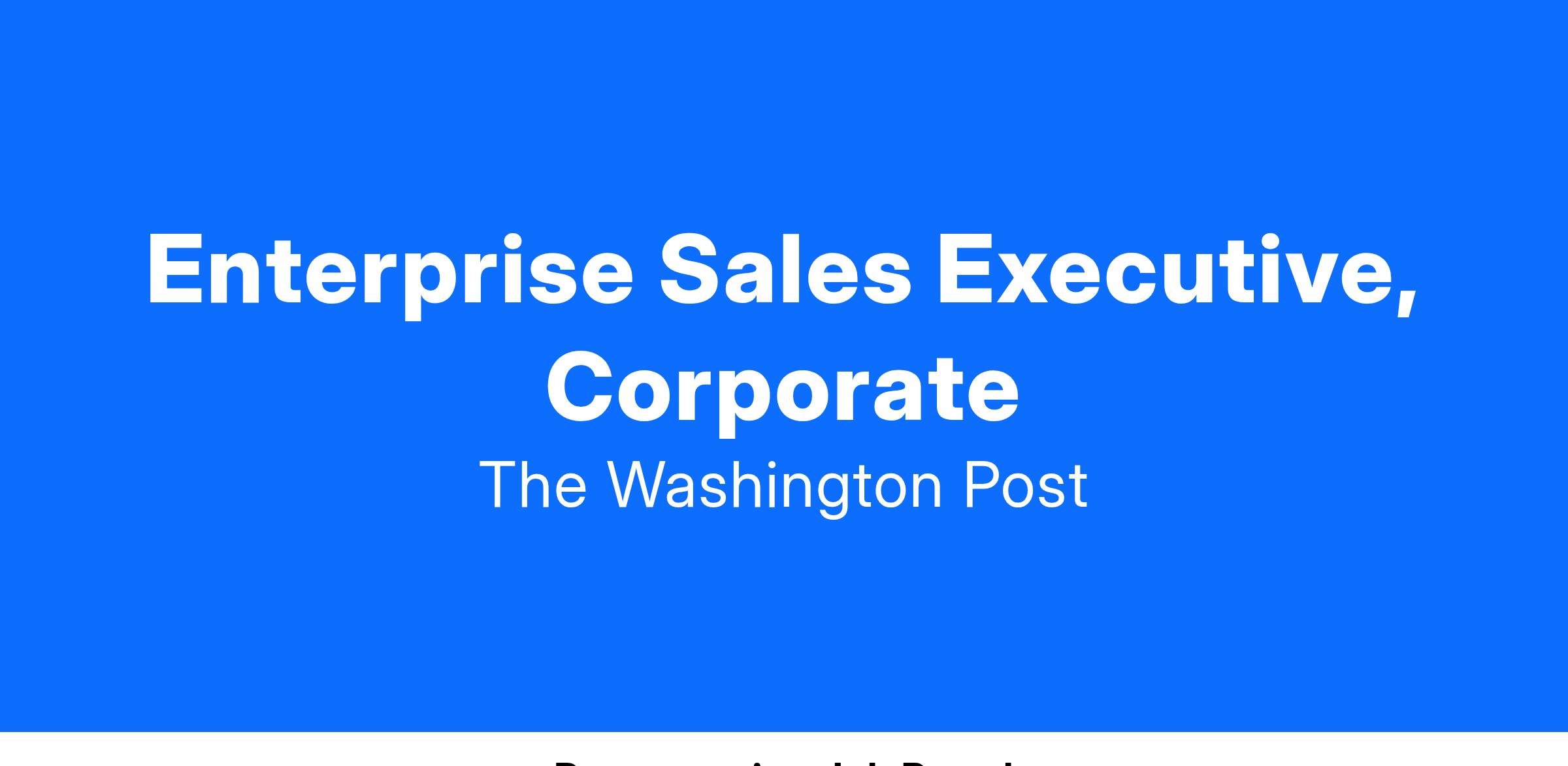 The Washington Post is looking for an Enterprise Subscriptions Sales Executive who will be responsible for the full sales cycle and closing new business deals, providing Enterprise access to The Washington Post for corporate or higher education clients. This position is ideal for individuals with a strong track record in B2B sales. Reporting to the Manager of Enterprise Subscriptions, the Sales Executive will be strategic in making the most of the revenue opportunities from the corporate/ higher education space.
