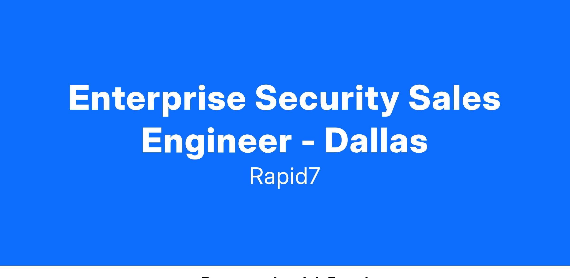 The Senior Sales Engineer works as an equal partner with our sales team in matching up customers with Rapid7's security solutions. You will be required to possess presentation-ready knowledge and product expertise on all Rapid7's product groups, with specialized expertise in the security solutions.
