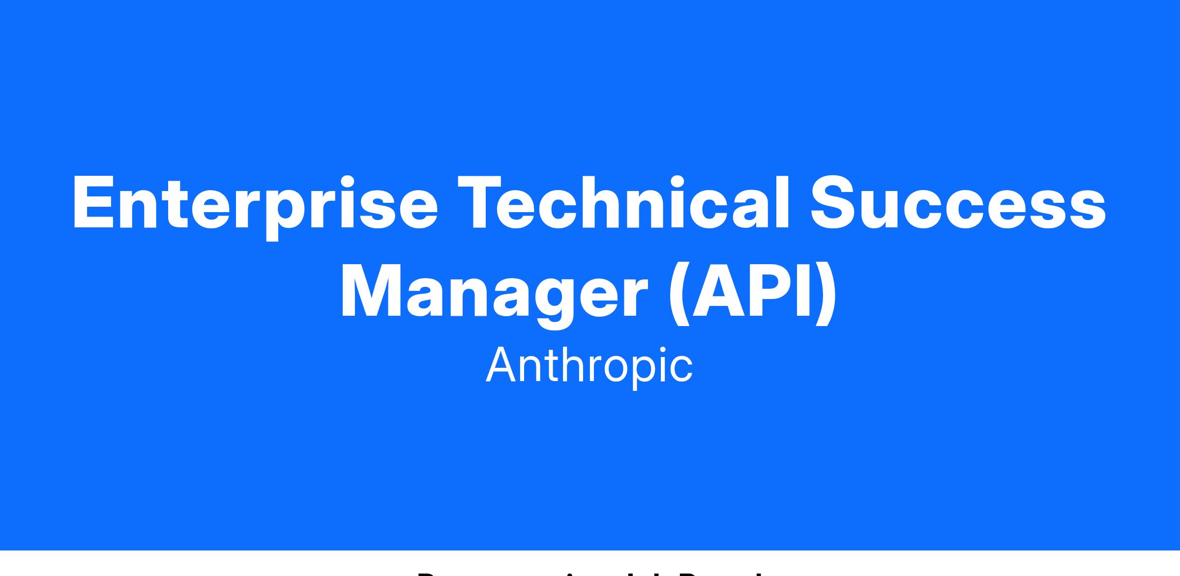 As a Enterprise Technical Success Manager at Anthropic, you will be a strategic partner and the go-to technical advisor to our enterprise API customers, helping them harness the full potential of our LLM technology to achieve their business objectives. You'll work with strategic customers by providing technical guidance while driving consumption and optimization of Anthropic's API solutions. Your role focuses on helping customers scale their usage effectively, identify new use cases, and maximize the value of their existing API integrations.