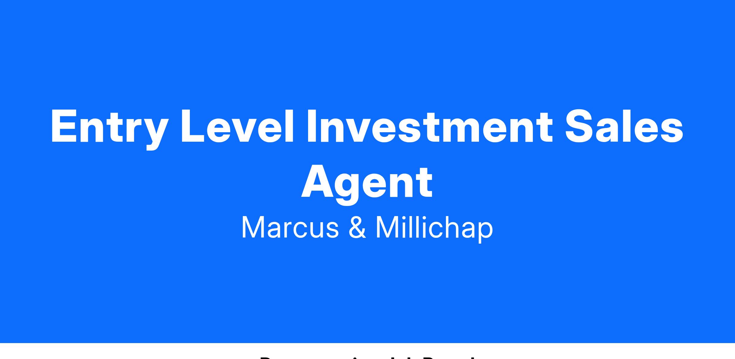 Marcus & Millichap is the industry’s largest firm specializing in real estate investment sales and financing, as well as a leading source of research and advisory services. We currently have established teams that are setting new records and looking to expand. This lucrative career is tailored for very determined, energetic and friendly candidates with a track record of getting done what most cannot. We provide a secure, stable yet entrepreneurial environment engineered to promote growth and performance. Our proven process for training, mentoring and selling commercial real estate sets us apart. We hire diverse individuals, and are now seeking the right person to become part of a successful team. Applicants should have an accomplished background which includes sales or commercial real estate and a track record of following direction, albeit many times taking on too much, ultimately to persevere and still get it done. Are you the right person to push the team to new highs?