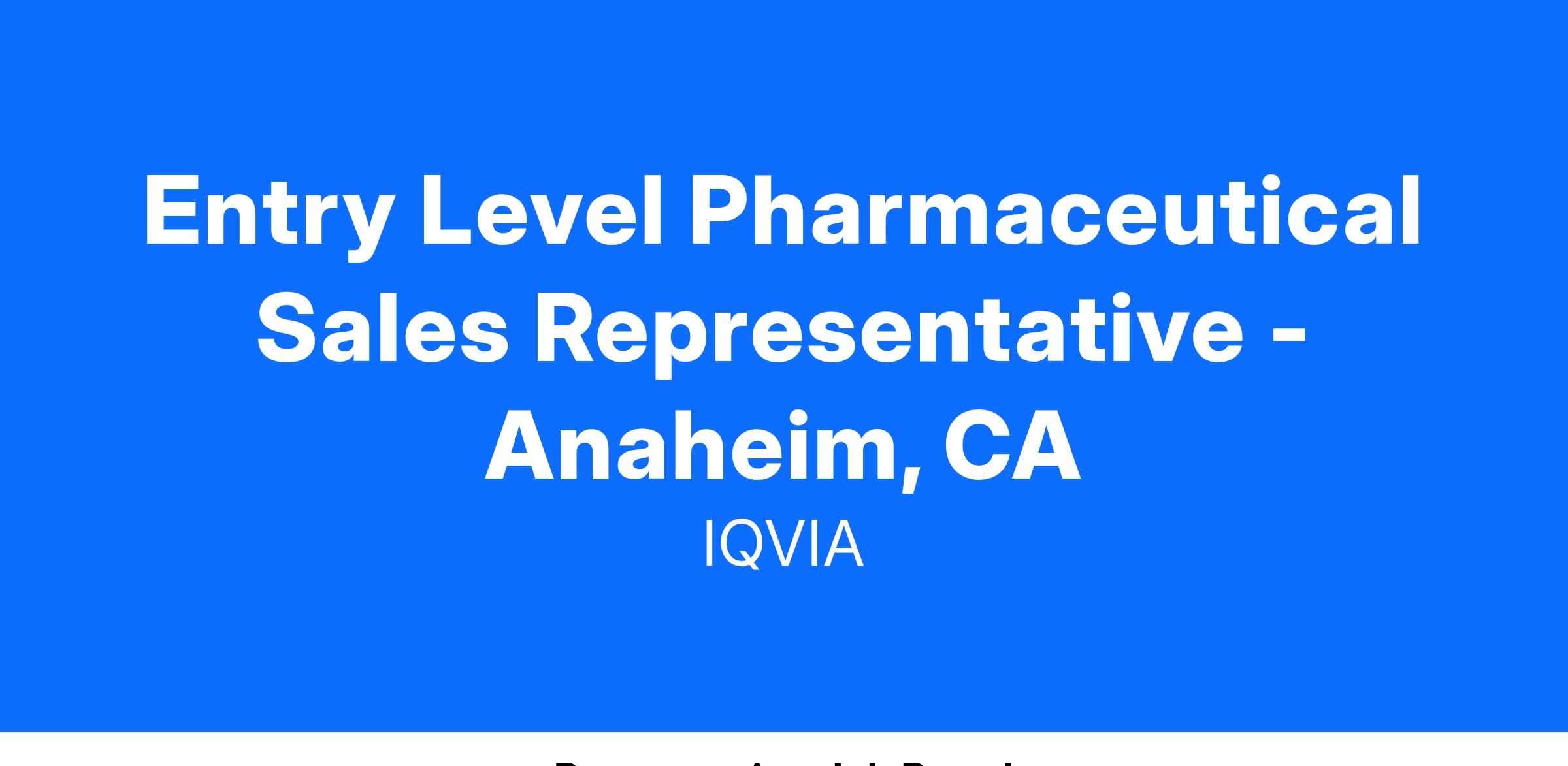 Entry Level Pharmaceutical Sales Representative - Anaheim, CA