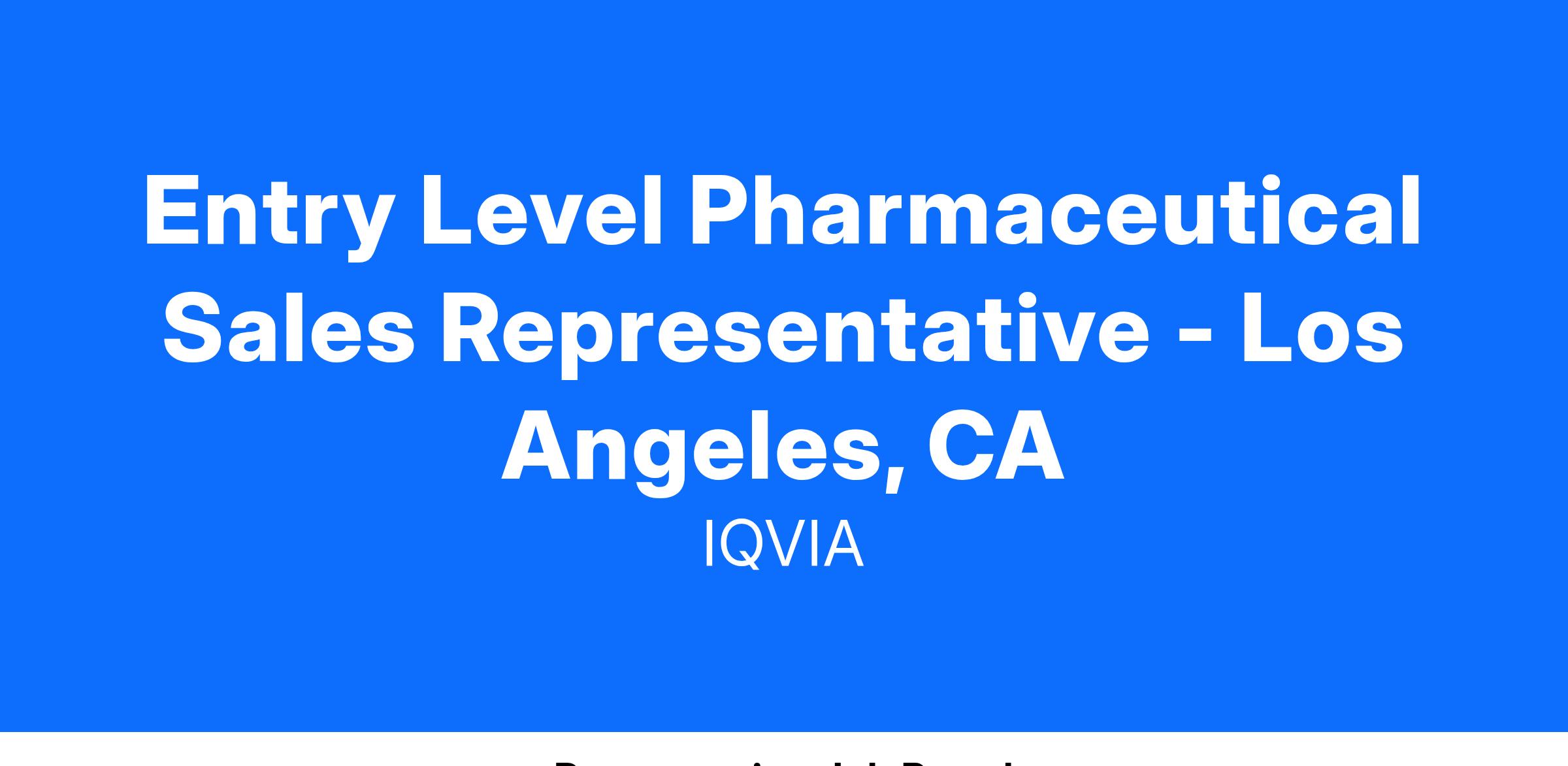 Entry Level Pharmaceutical Sales Representative - Los Angeles, CA