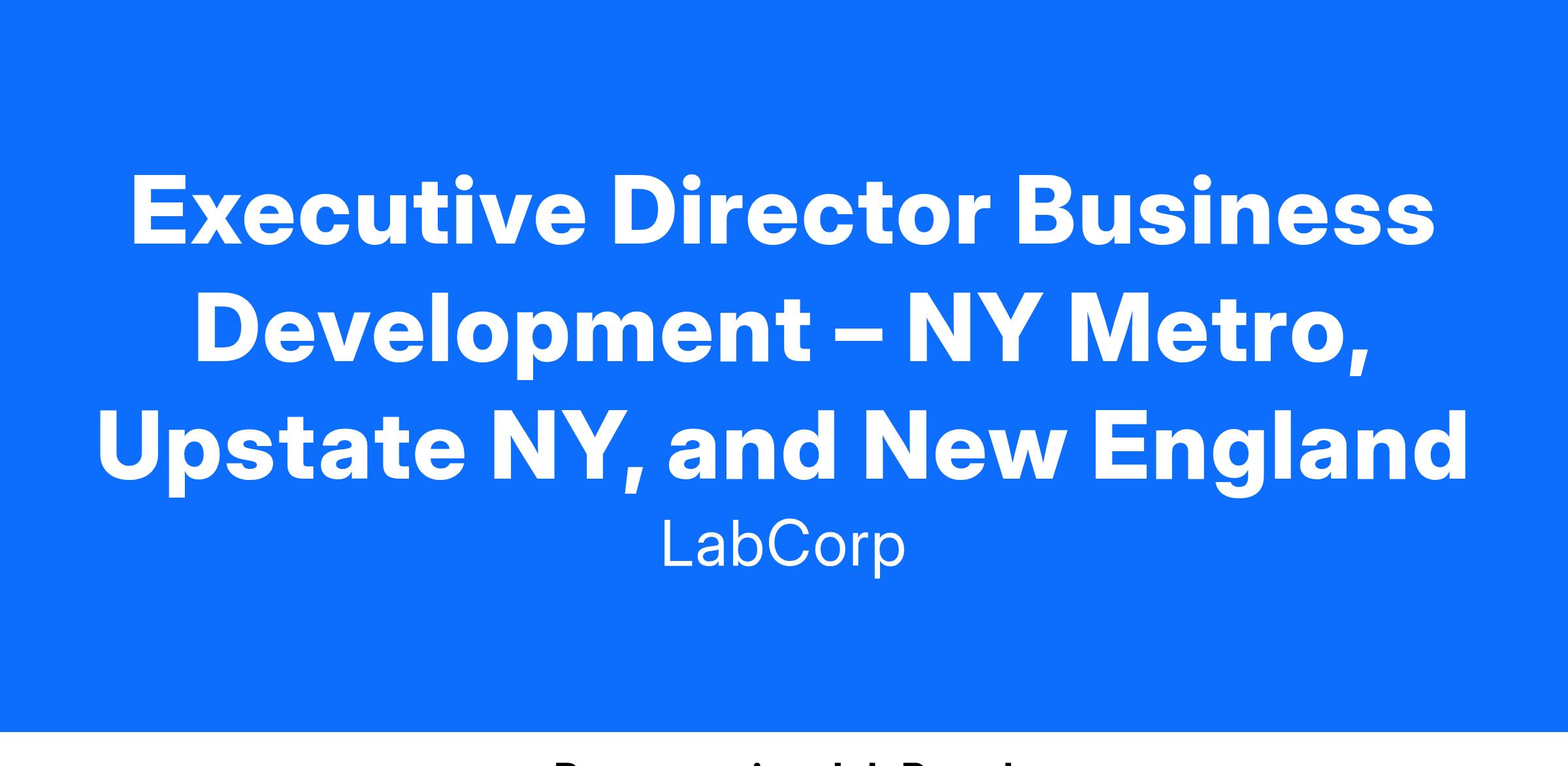 Recognized as one of Forbes 2024 “America's Best Large Employers” and named to the Forbes 2024 "Best Employers for Diversity", Labcorp is seeking an Executive Director Business Development for New York Metro, Upstate New York, and New England.
