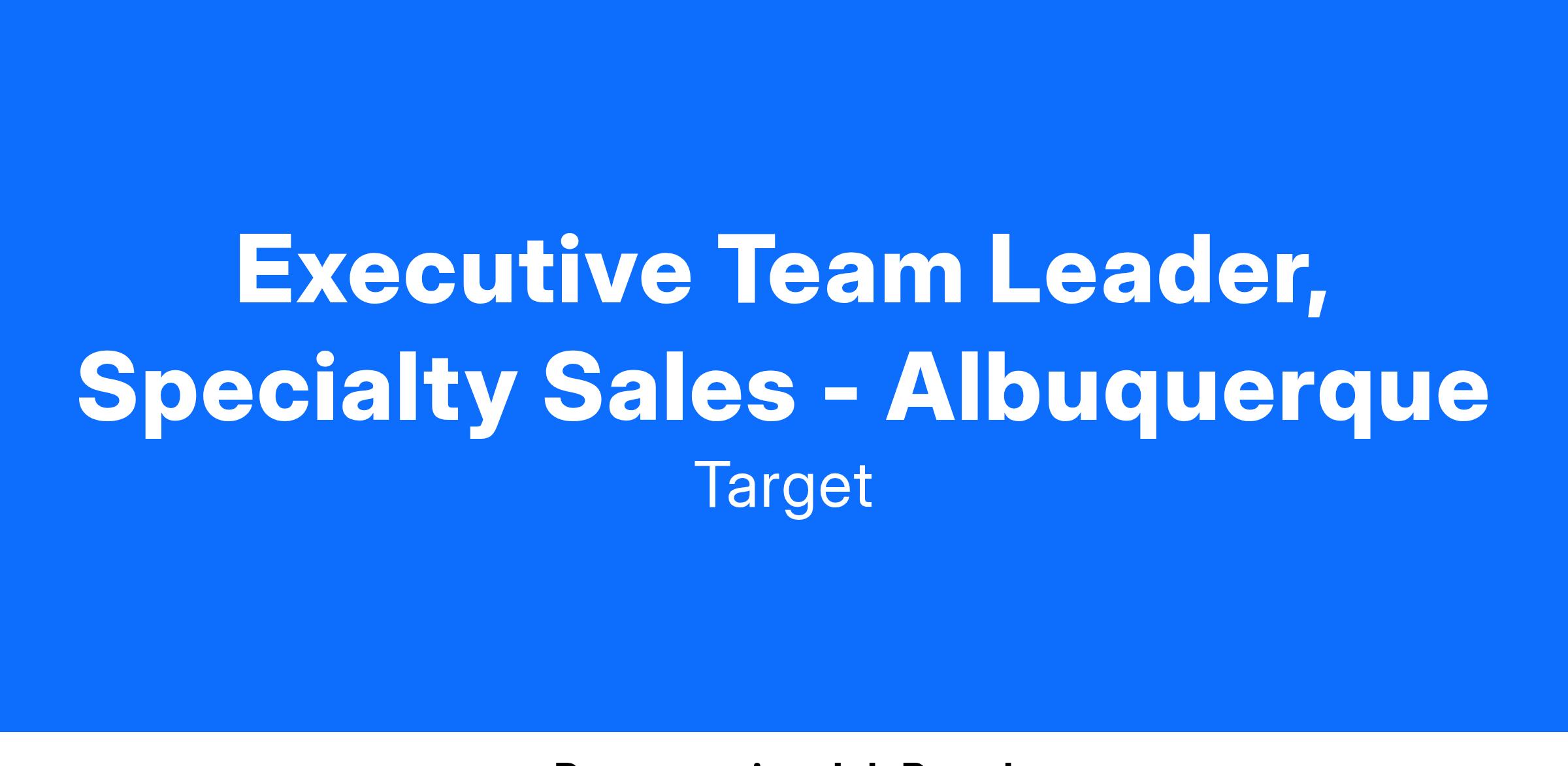 Executive Team Leader, Specialty Sales - Albuquerque