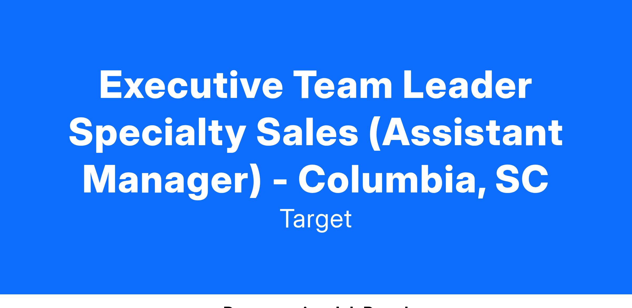 Executive Team Leader Specialty Sales (Assistant Manager) - Columbia, SC