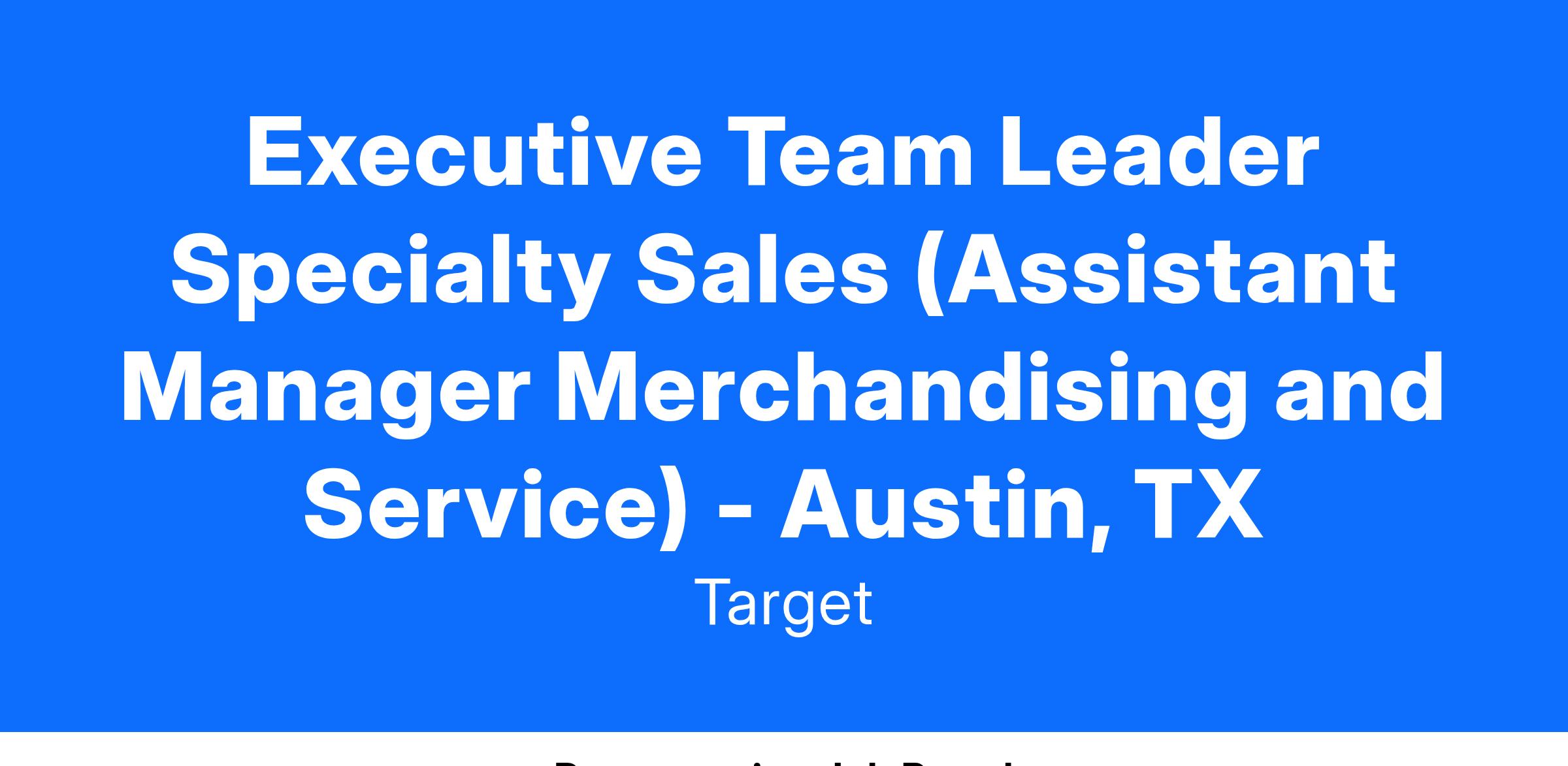 Executive Team Leader Specialty Sales (Assistant Manager Merchandising and Service) - Austin, TX