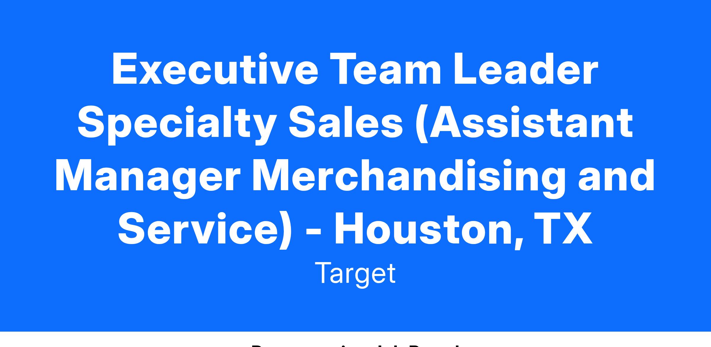 At Target, we believe in our team members having meaningful experiences that help them build and develop skills for a career. The role of a Specialty Sales Executive Team Leader can provide you with the: