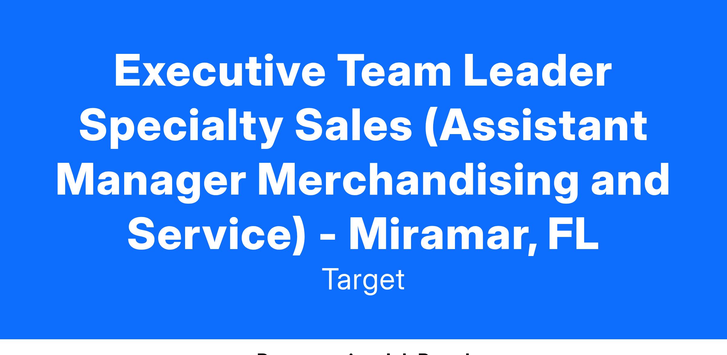 At Target, we believe in our team members having meaningful experiences that help them build and develop skills for a career. The role of a Specialty Sales Executive Team Leader can provide you with the: