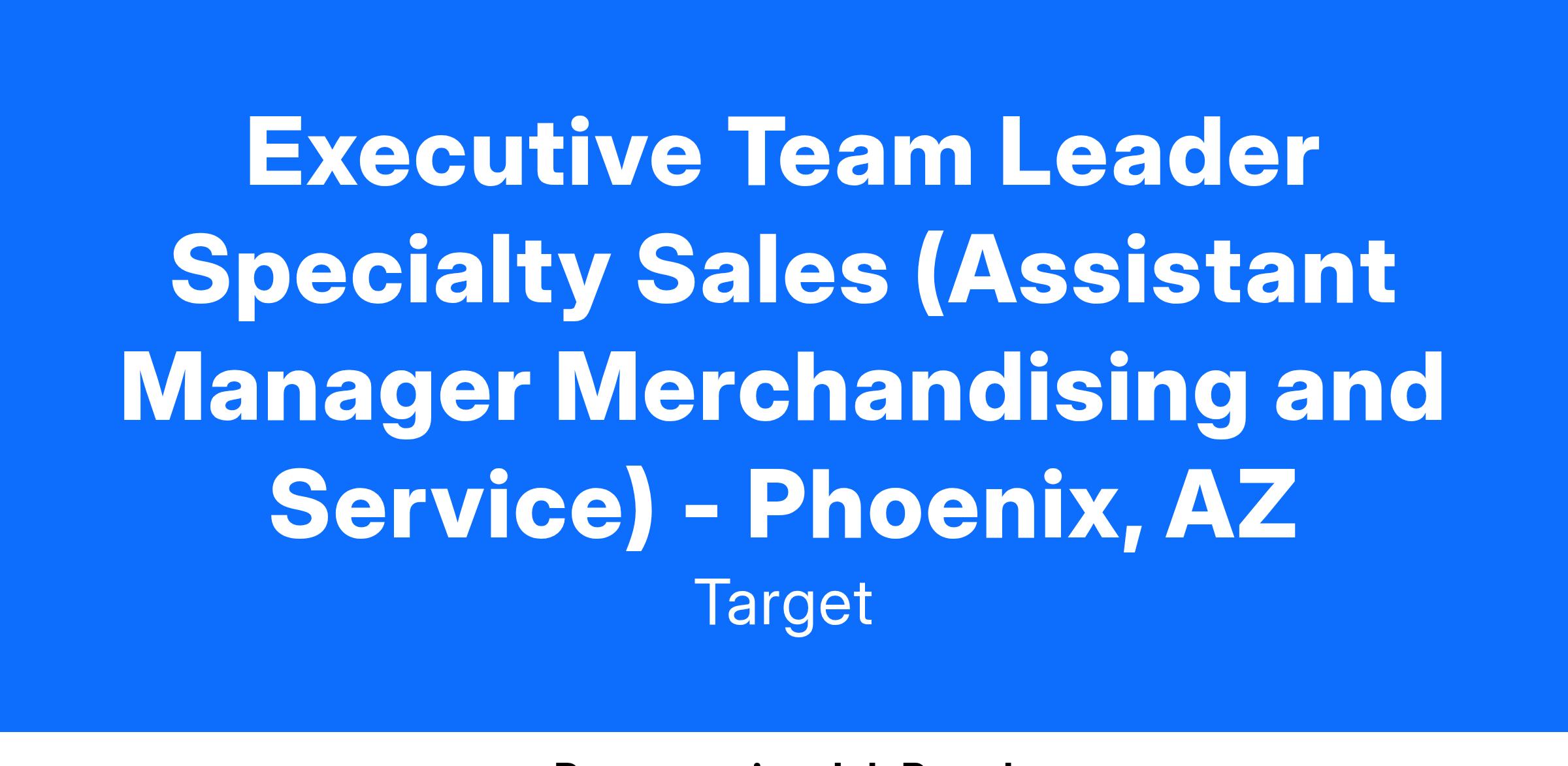 At Target, we believe in our team members having meaningful experiences that help them build and develop skills for a career. The role of a Specialty Sales Executive Team Leader can provide you with the: