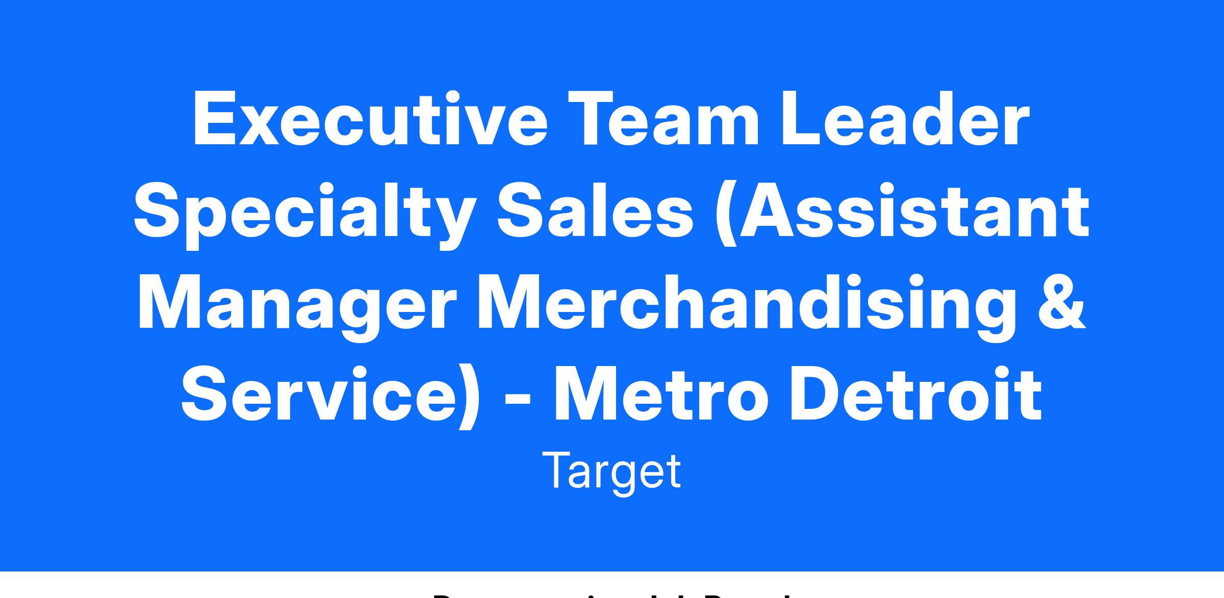 Executive Team Leader Specialty Sales (Assistant Manager Merchandising & Service) - Metro Detroit