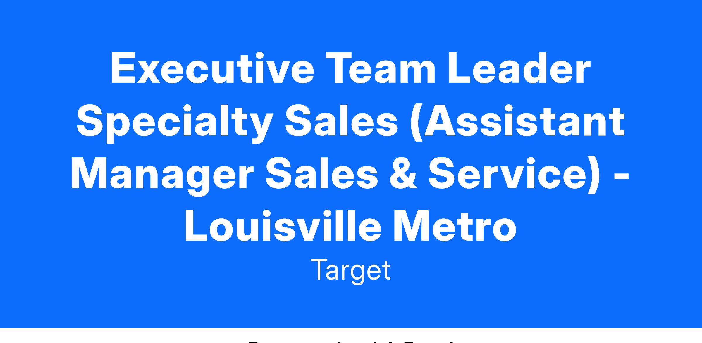 Executive Team Leader Specialty Sales (Assistant Manager Sales & Service) - Louisville Metro