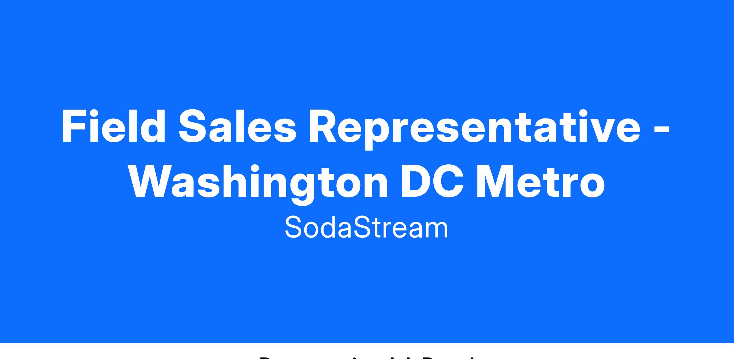 *This position will be based in and around Washington DC Metro. This territory spreads from Bel Air, MD, Ballenger Creek, MD , Gainesville, VA, Dale City, VA and Annapolis, MD. Only candidates based in this geographical area will be considered.*