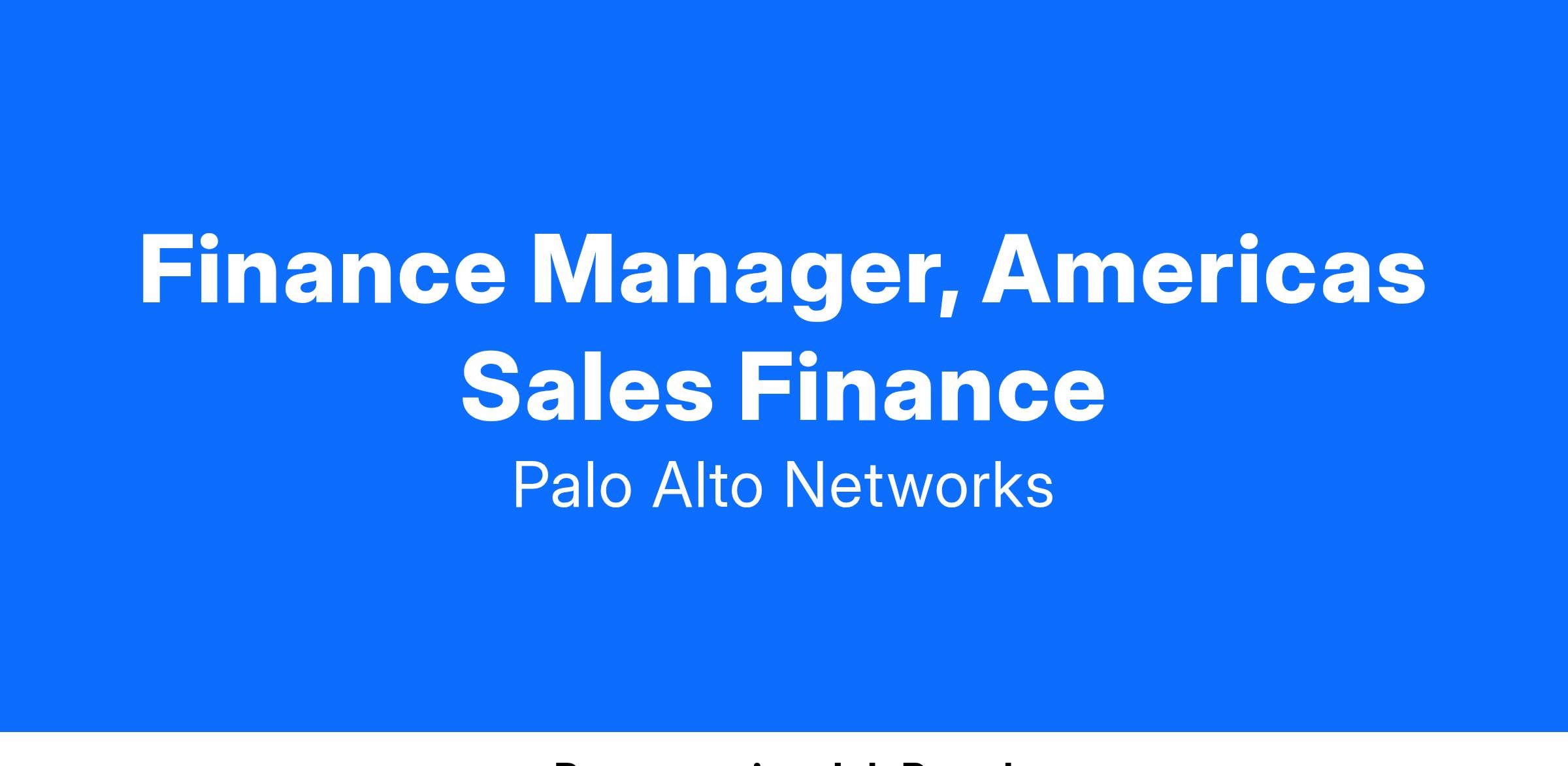 Palo Alto Networks has an exciting opportunity for an experienced and highly motivated Finance Manager, Sales FP&A professional to join our team. In this role, you will work closely with the Director of North America Finance and business partners in North America Sales to help drive strategic decision-making, provide financial insight, and build operational rigor and efficiency.