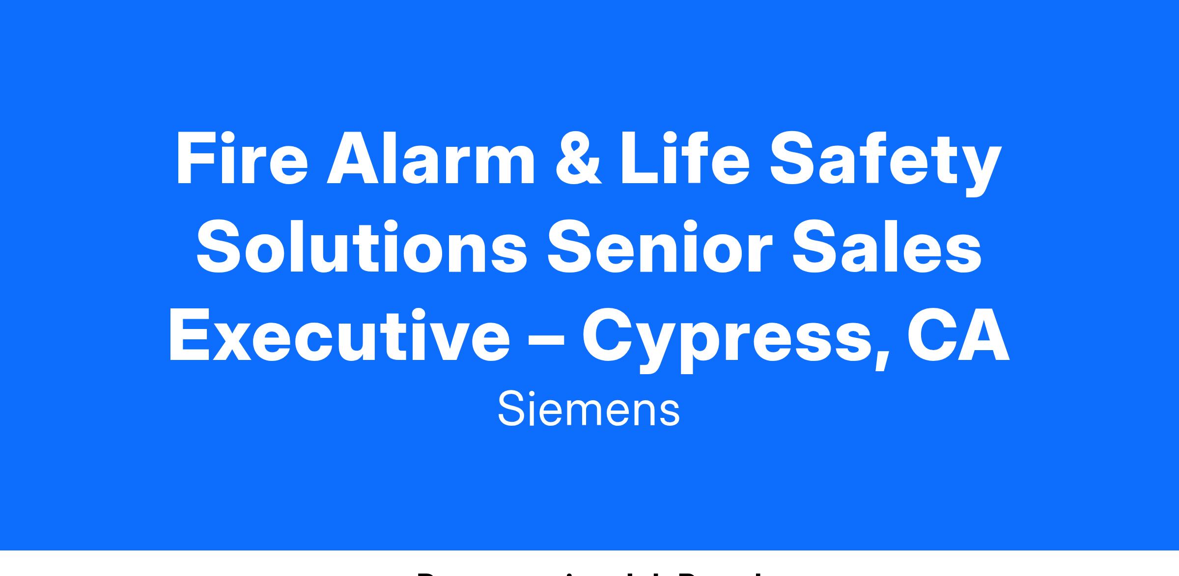 The Solutions Senior Sales Executive is committed to supporting our Solutions (New Construction) business within our commercial Smart Buildings Total Fire Alarm & Life Safety Service team. In this role, you will achieve booking and profit goals by developing and implementing plans to grow, develop, and manage contractor, consultant, authority having jurisdiction, developer, and end-user relationships; capitalize on sales opportunities within the territory; and effectively execute sophisticated deals independently within our established guidelines. Why is this so important? Our Sales Executives are ambassadors of quality Siemens technology, products and services, and your expertise and regular interaction with the customers will help them optimize and facilitate a safe, emergency-ready workplace.