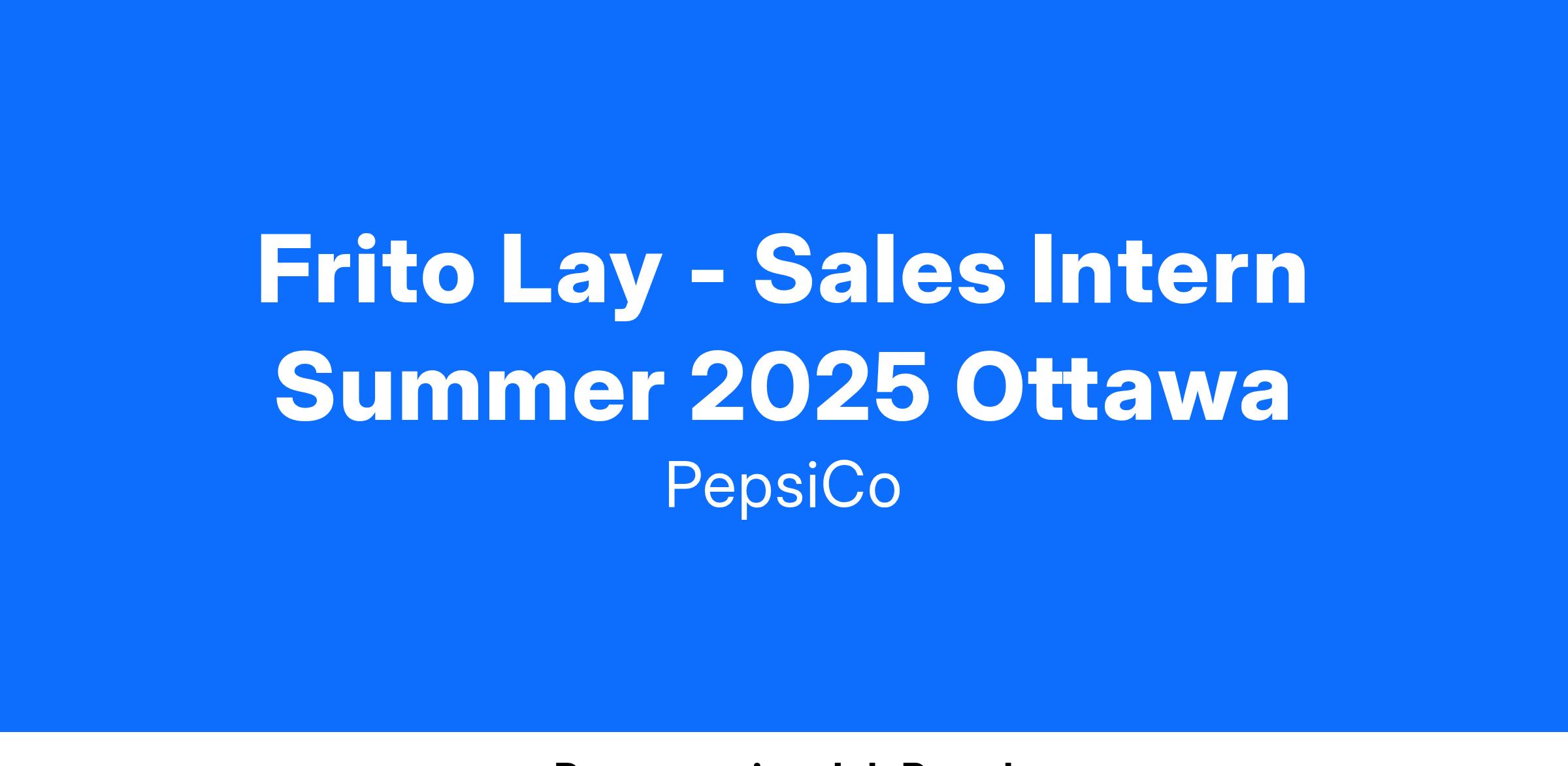 Frito Lay - Sales Intern Summer 2025 Ottawa