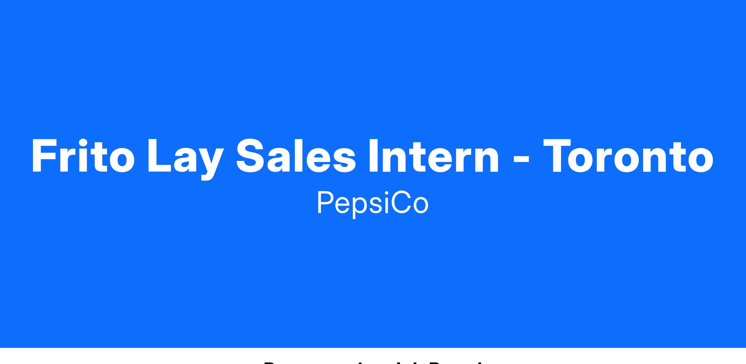 Frito Lay Sales Intern - Toronto