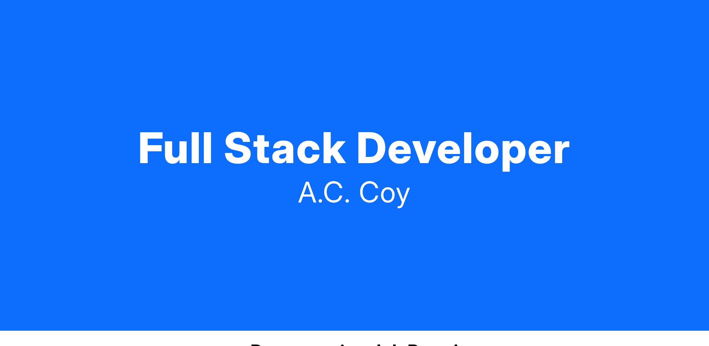 The A.C. Coy Company is currently seeking candidates for a Full Stack Developer role. This individual will be responsible for using a combination of the latest tools and technologies to build everything a user sees and interacts with on a website and mobile application. Our ideal candidate will have 4+ years of full stack development experience and proficiency with C#, React, and Typescript.