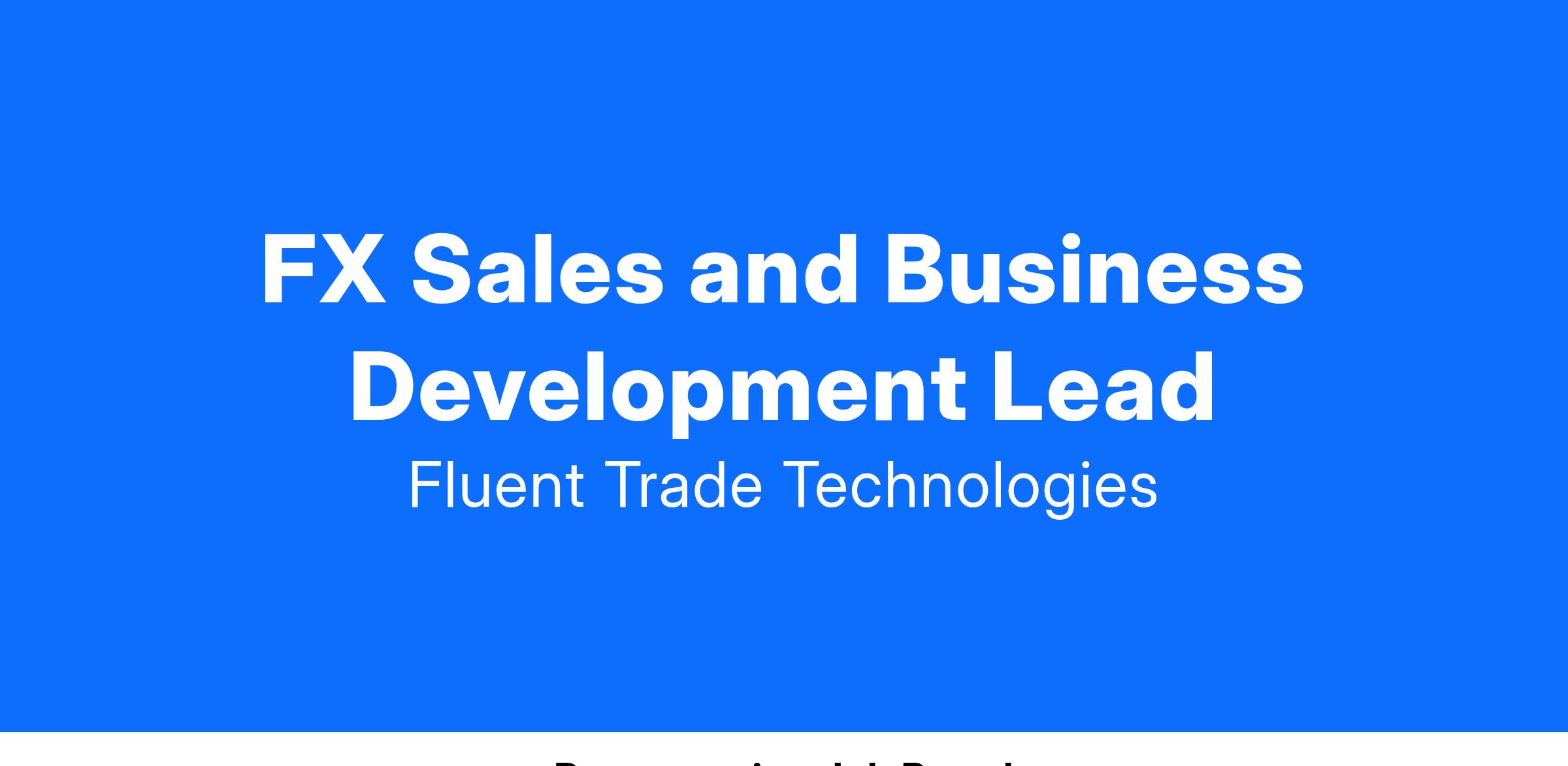Fluent seeks a mid-senior individual to drive its technology sales and business development efforts in North America. The role demands that the individual be a self-starter, have extensive FX market knowledge and contacts, and have a proven track record in FX market trading technology sales.