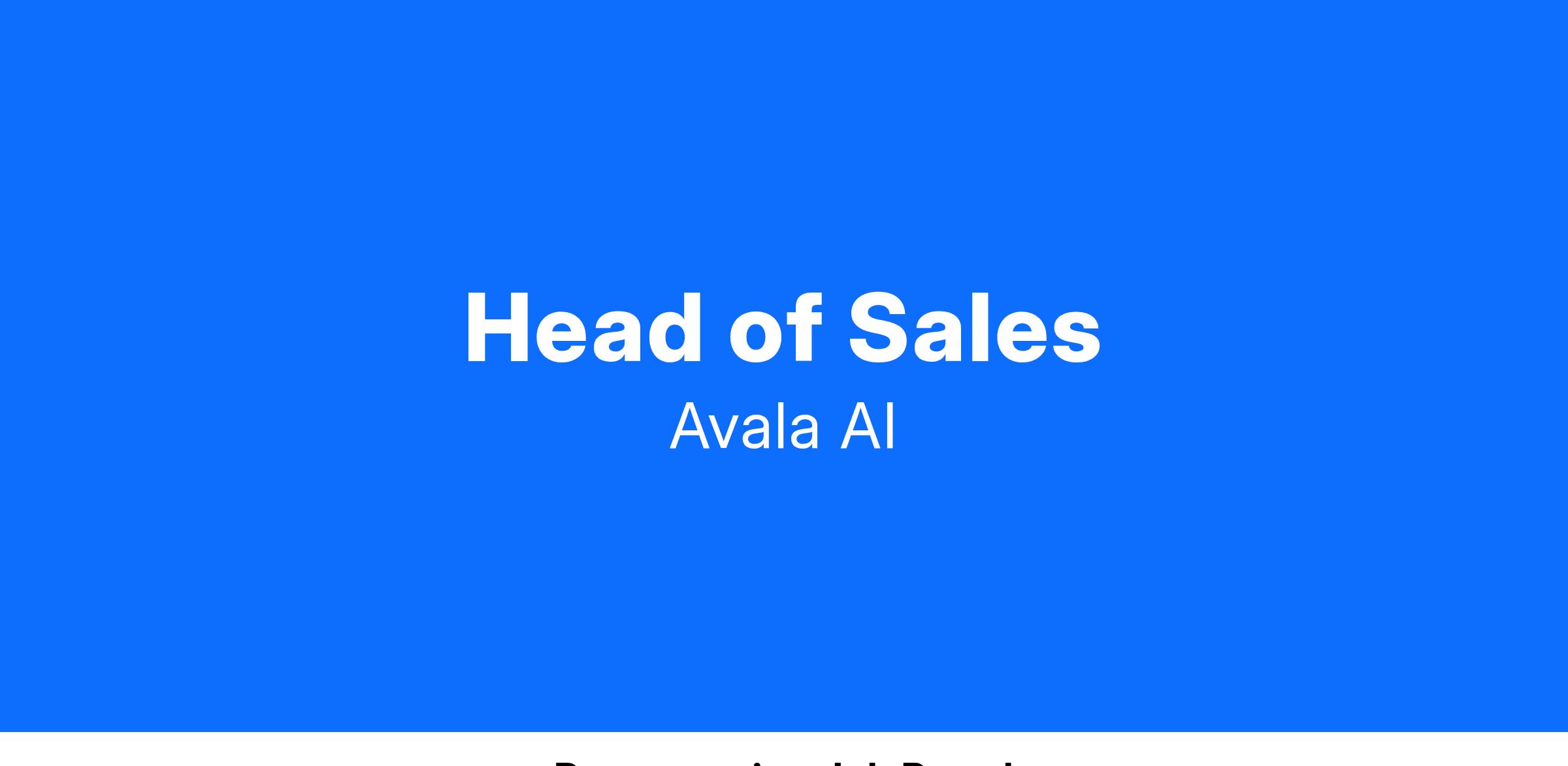 We are seeking a Head of Sales to establish and grow our global sales, design and manage our customer success operations, assemble and lead a Jedi caliber sales team, and drive strategy and execution of Avala's marketplace and SaaS revenue.