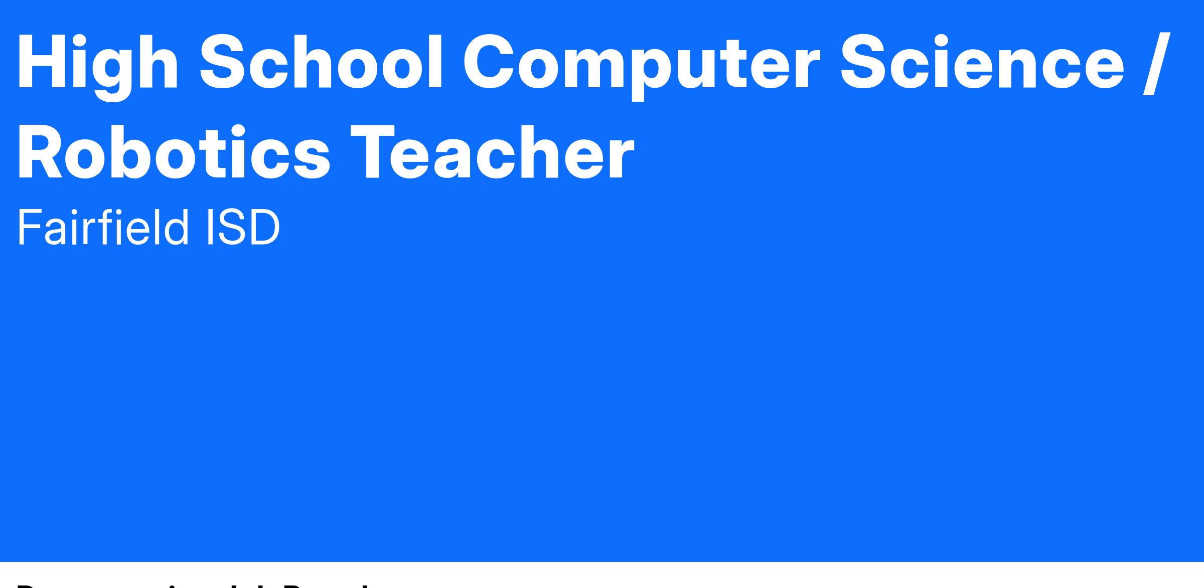 For more information, please contact Principal Sonya Gibson at 903.389.4177 or by email at sonya.gibson@fairfieldisd.org.
