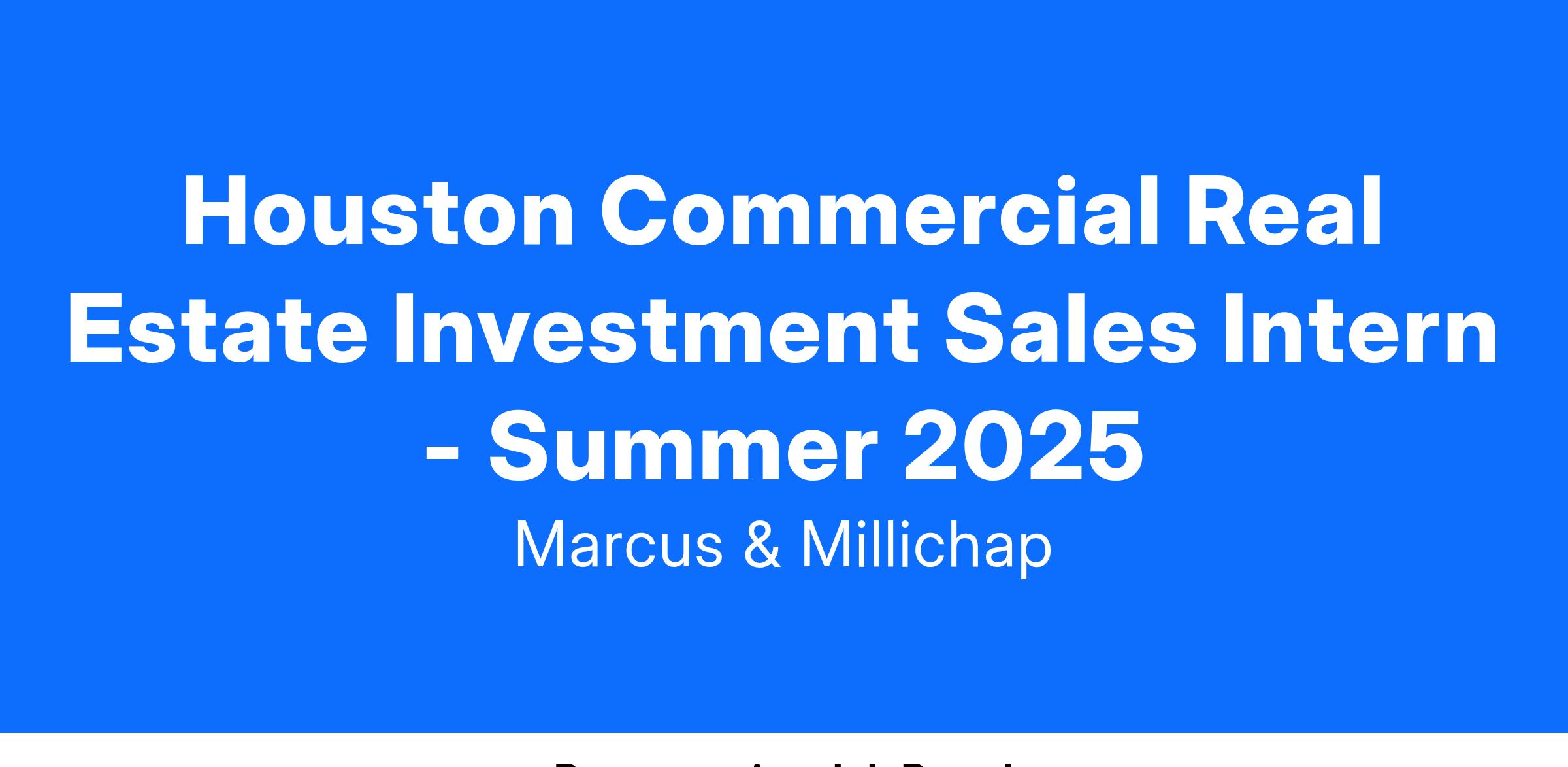 The Marcus & Millichap Investment Brokerage Internship is a paid, eight-week, corporate-sponsored program in which rising college juniors and seniors work directly with established, successful brokers and capital markets professionals to prepare for a career in commercial real estate (CRE). This unique opportunity is a blend of education, training, and mentorship where interns will be in-office for the day-to-day CRE experience while also having the chance to attend workshops and network with senior brokers and capital markets professionals.