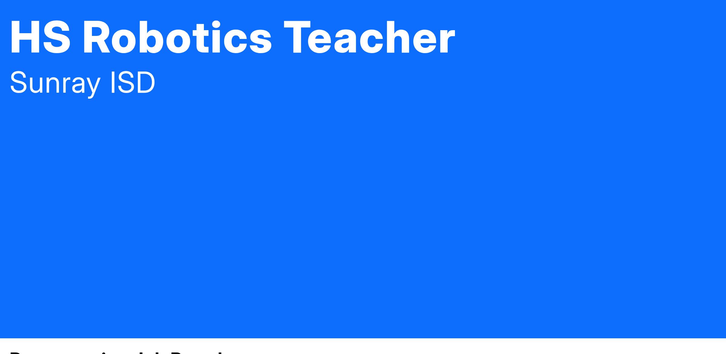 A high school robotics teacher guides students in designing, building, programming, and operating robots, often within the context of a robotics club or competition. They may also teach robotics as part of a broader STEM or technology curriculum.