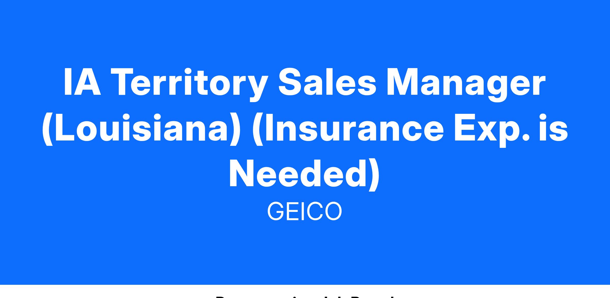 We are seeking an IA Territory Sales Manager who will be responsible for growing agency relationships to increase revenue and market share of GEICO and GEICO-affiliated products within an assigned geographic area.