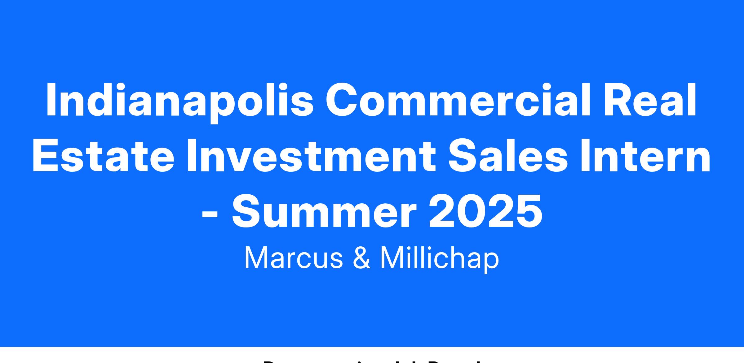 Indianapolis Commercial Real Estate Investment Sales Intern - Summer 2025