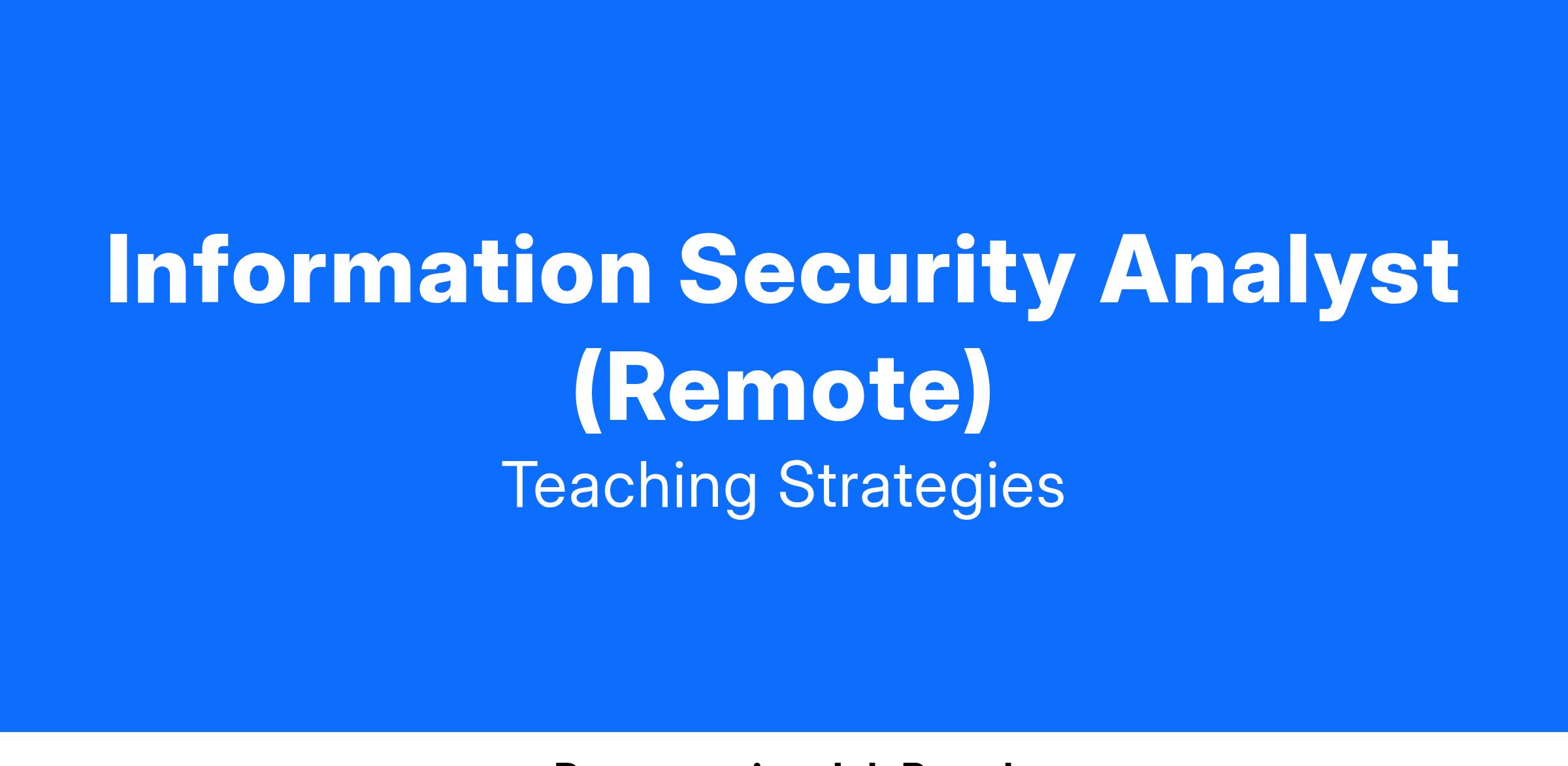Information Security Analyst (Remote)