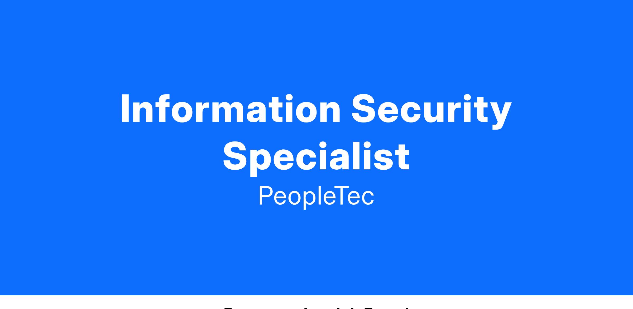 PeopleTec is currently seeking a Information Security Specialist to support our Huntsville, AL location.