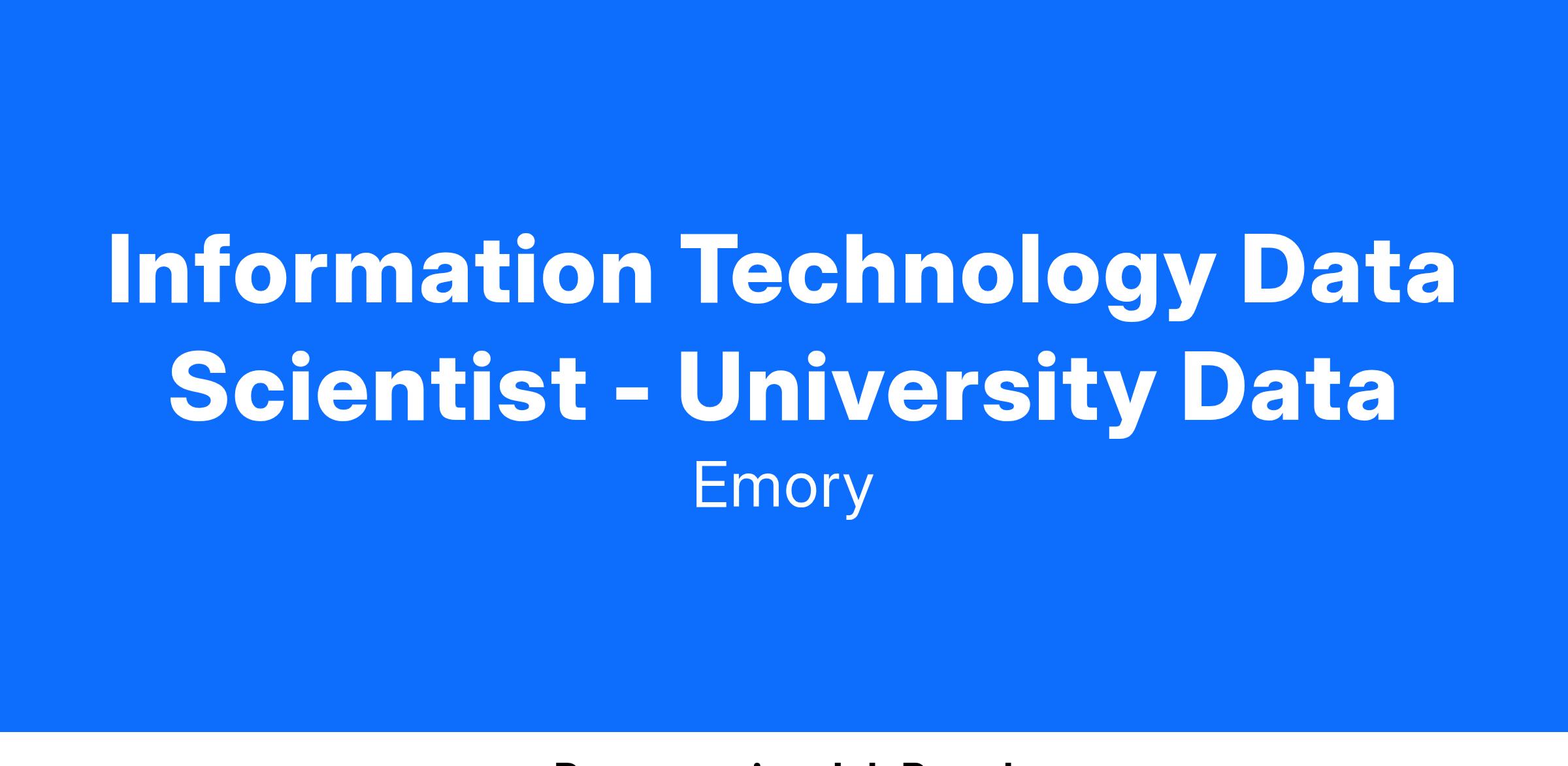 The University Data office at Emory is looking for a Data Scientist who is passionate about developing data products and solutions that will help advance the mission and support the strategies of the institution. In this role, you will harness your expertise in data science and technology to gather, analyze, and interpret diverse data sets. The ideal candidate will derive actionable insights and make strategic inferences to tackle challenging business problems. Emory University is seeking a team player who combines a strong aptitude for machine learning and AI with a keen appetite for business acumen. If you are driven to innovate and passionate about using data to affect meaningful change across the institution, we invite you to apply.