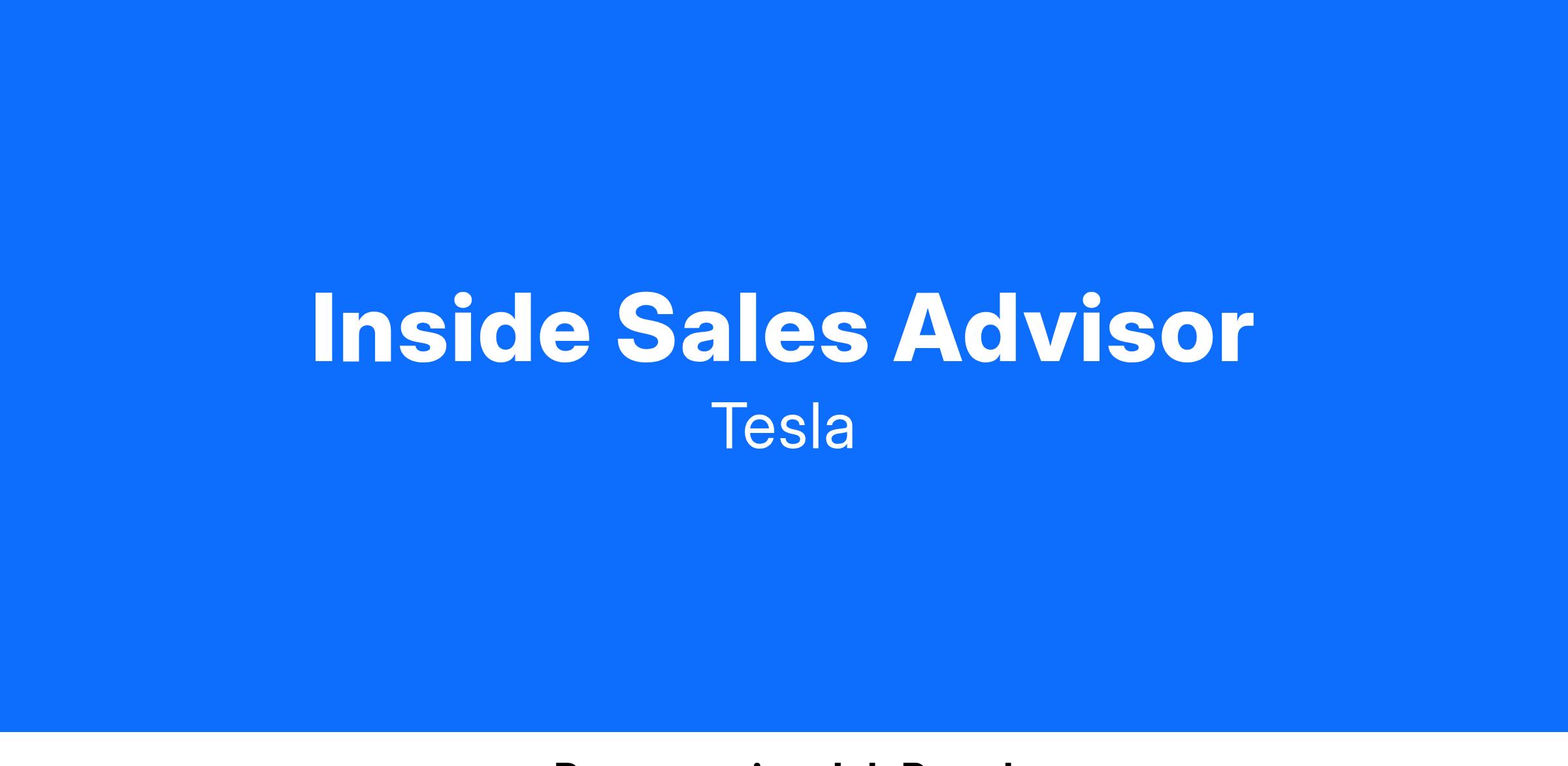 Tesla is looking for an onsite Inside Tesla Sales Advisor to help us fulfill our mission of accelerating the world's transition to sustainable energy while creating lifelong customers.