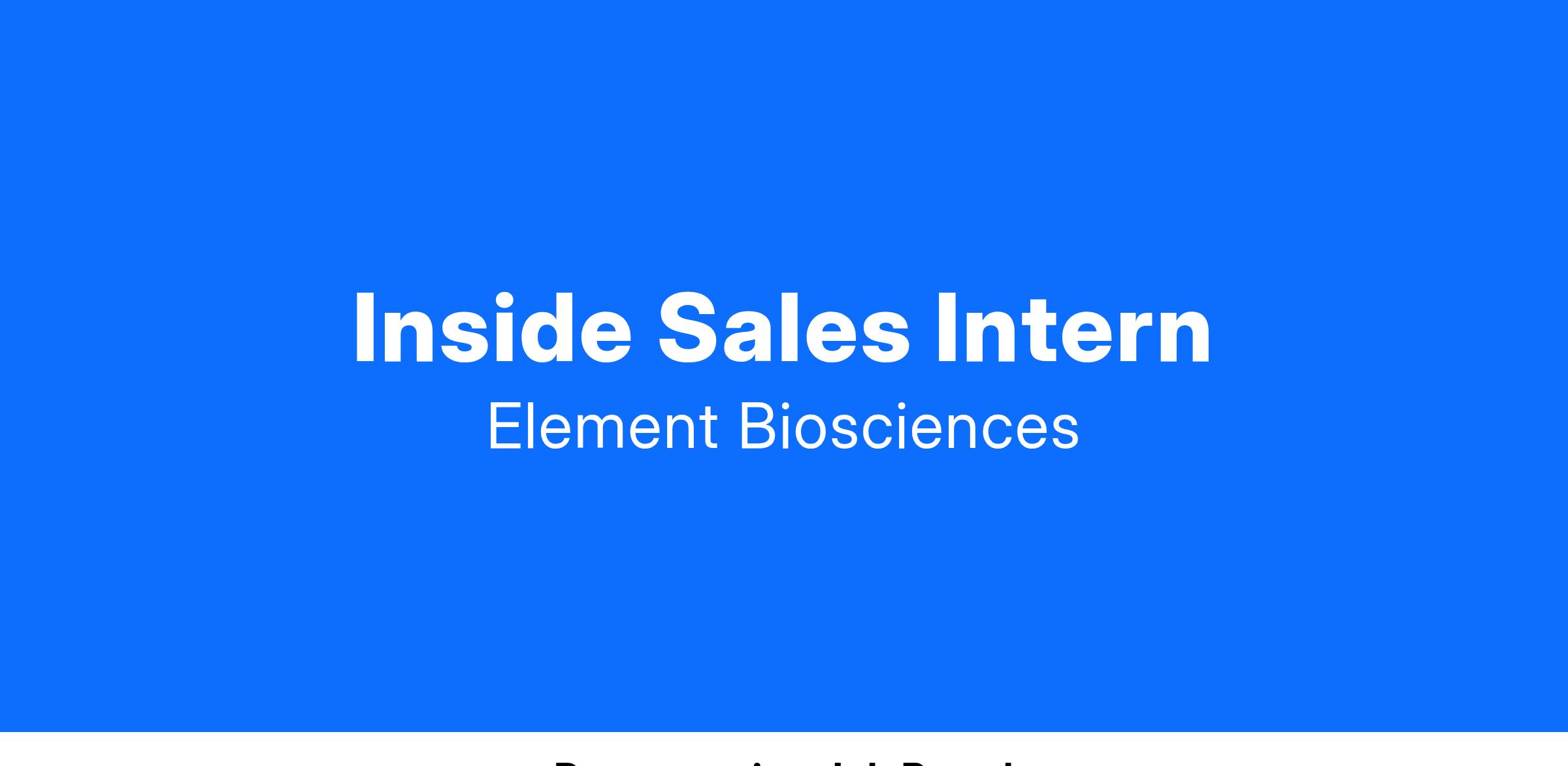We are seeking an Inside Sales Intern who will play a pivotal role in supporting the sales activities of Element AVITI instruments, consumables and services. This is an incredible opportunity for someone who is passionate about getting experience and exposure to commercial teams, help prospect from a wide variety of sources, and to identify the owner of these qualified opportunities. This internship will also provide opportunities to develop soft-skills as well as meet with Leaders across the organization to learn about their careers and gain insights on how to navigate your early career decisions.