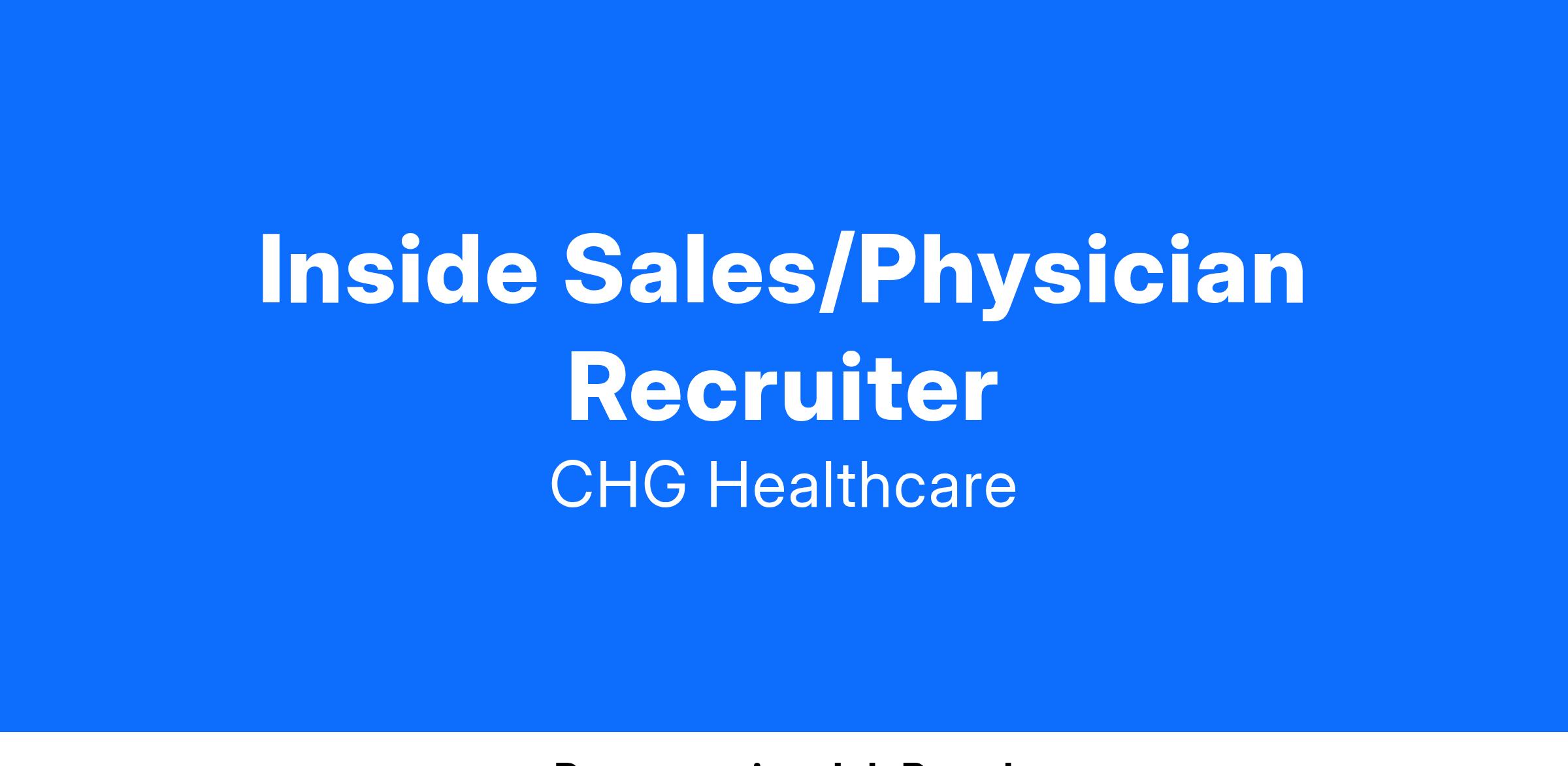 CHG Healthcare values a diverse and inclusive workforce. Interested in this role but not a perfect fit? Apply anyway.
