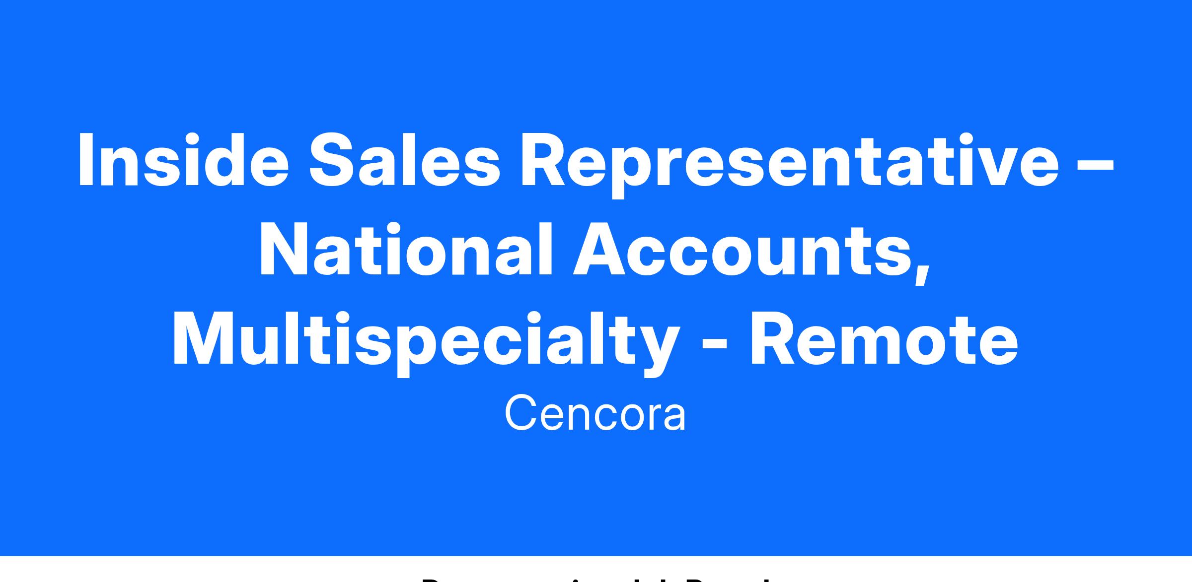 The Inside Sales Representative - National Accounts, Multispecialty works with customers to proactively and reactively help identify, understand, and resolve business, distribution, and operational issues; responds to customer inquiries and takes actions essential to maintaining favorable customer relations; and works both independently and collaboratively with other Specialty Distribution and Cencora team members focusing on accounts where high-touch customer interaction is essential to business retention and expansion.