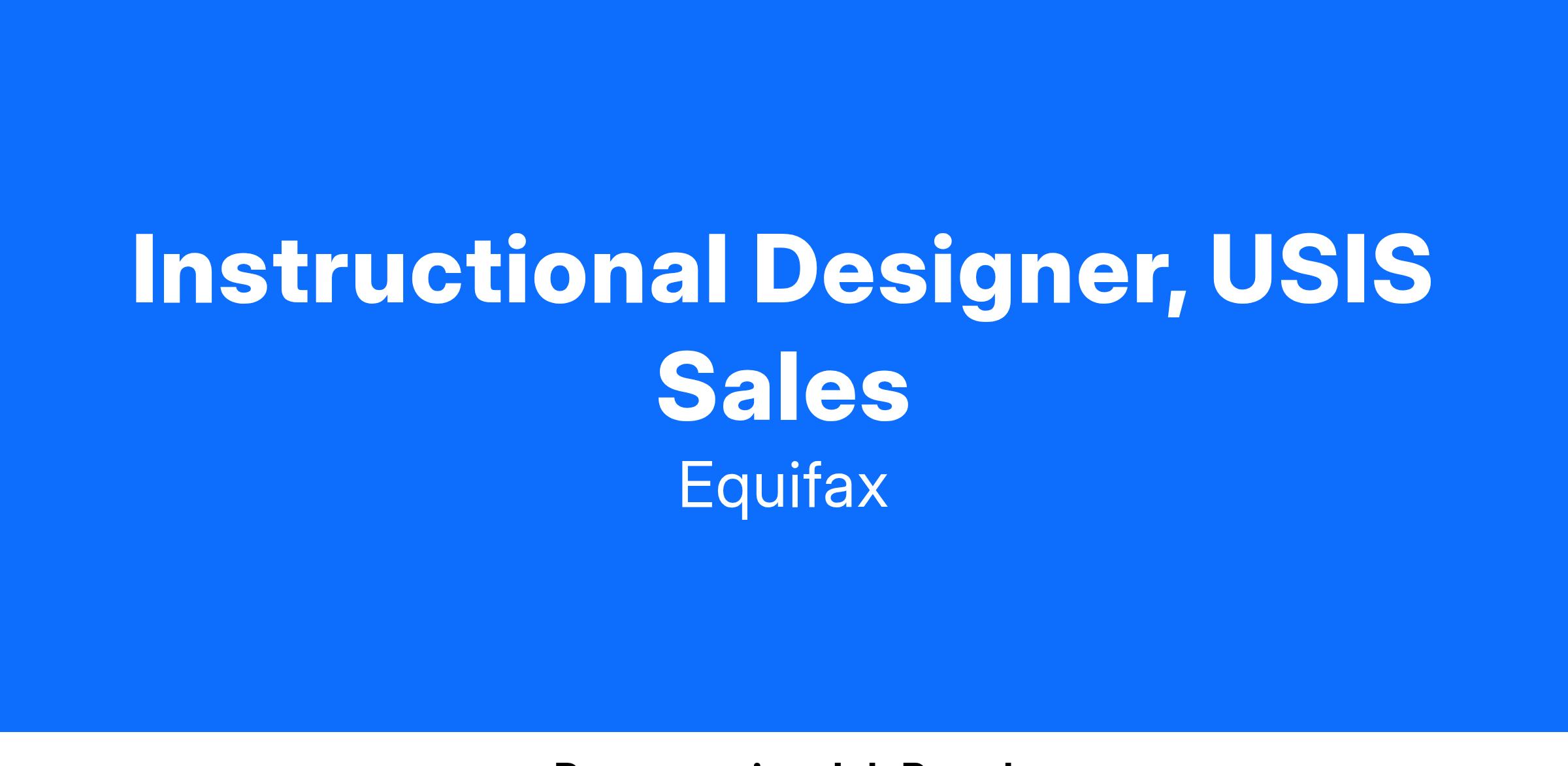 As a member of the Equifax University Team, the Instructional Designer will have the opportunity to advance and refine ongoing developmental training opportunities for various roles across Equifax USIS, with a strong focus on Sales roles. They will be responsible for generating effective, engaging training content through working closely with Leaders and Partners to diagnose learning needs, identify appropriate training solutions, and design and develop learning experiences to facilitate achievement of the business unit’s goals.