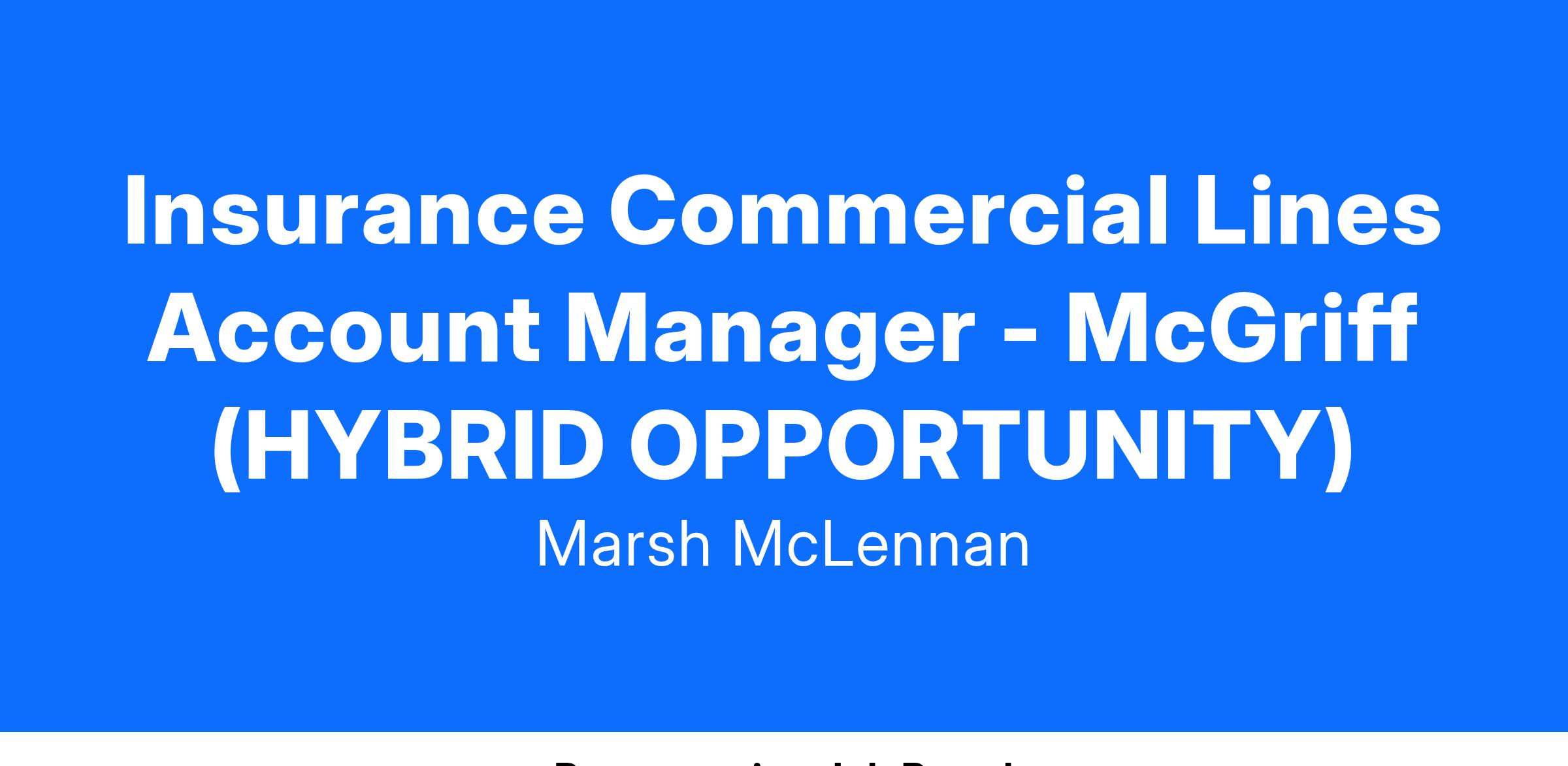 Insurance Commercial Lines Account Manager - McGriff (HYBRID OPPORTUNITY)
