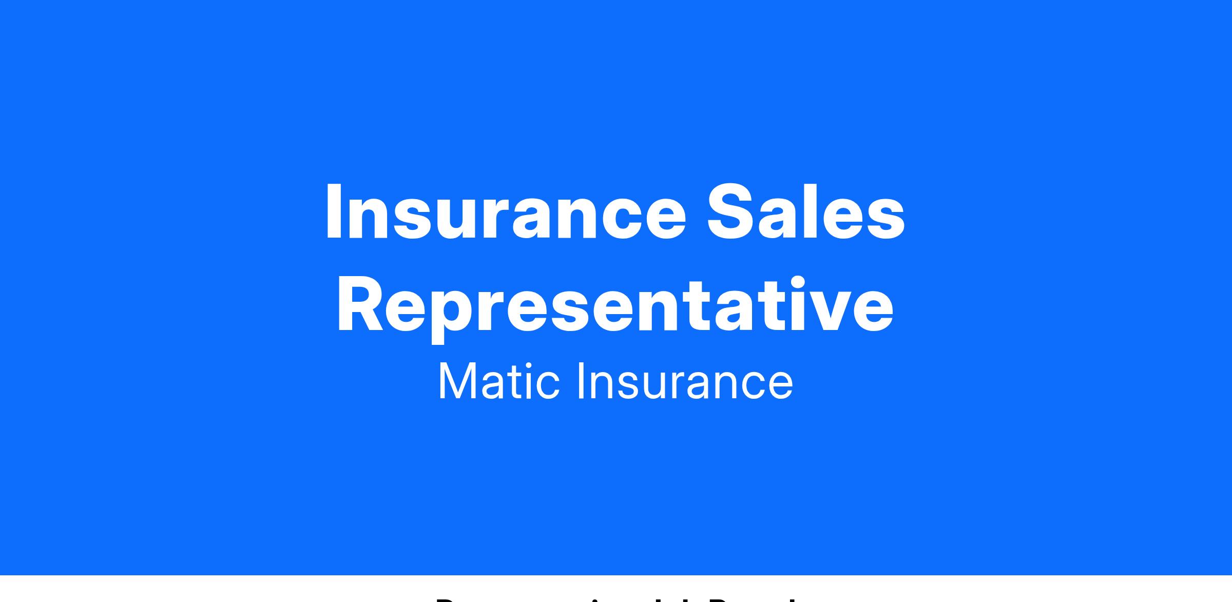 The Insurance Sales Representative role provides a 3-week pathway to our Licensed Insurance Agent role following a personal lines licensing program. No license required- Matic will provide all training and licensing! Our Insurance Agent is responsible for helping drive revenue and growth for the organization. You will be tasked with educating and advising customers on the most optimal personal lines insurance products. Matic specializes in streamlining the process for customers going through the lending process to purchase homeowners insurance. Because of that, Matic is able to deliver qualified leads to our insurance advisors, so you can spend time doing what you do best, selling insurance.