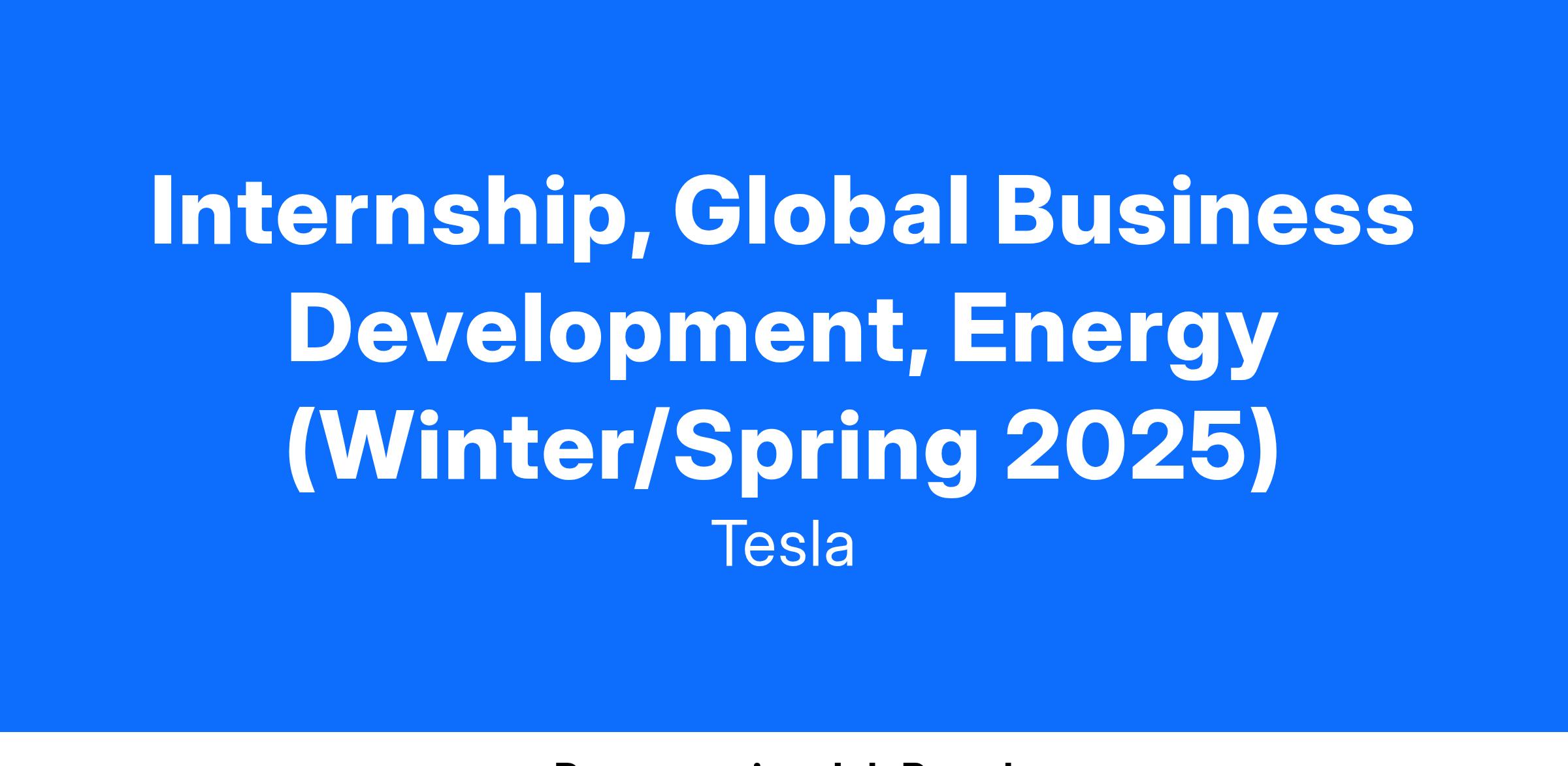 Global business development is a small but mighty team that works to analyze markets, shape emerging business models, and advise the energy business on how best to meet Tesla's mission of accelerating the transition to sustainable energy. During this project, the intern will work with other teams across the business to seek their input and refine the offer.