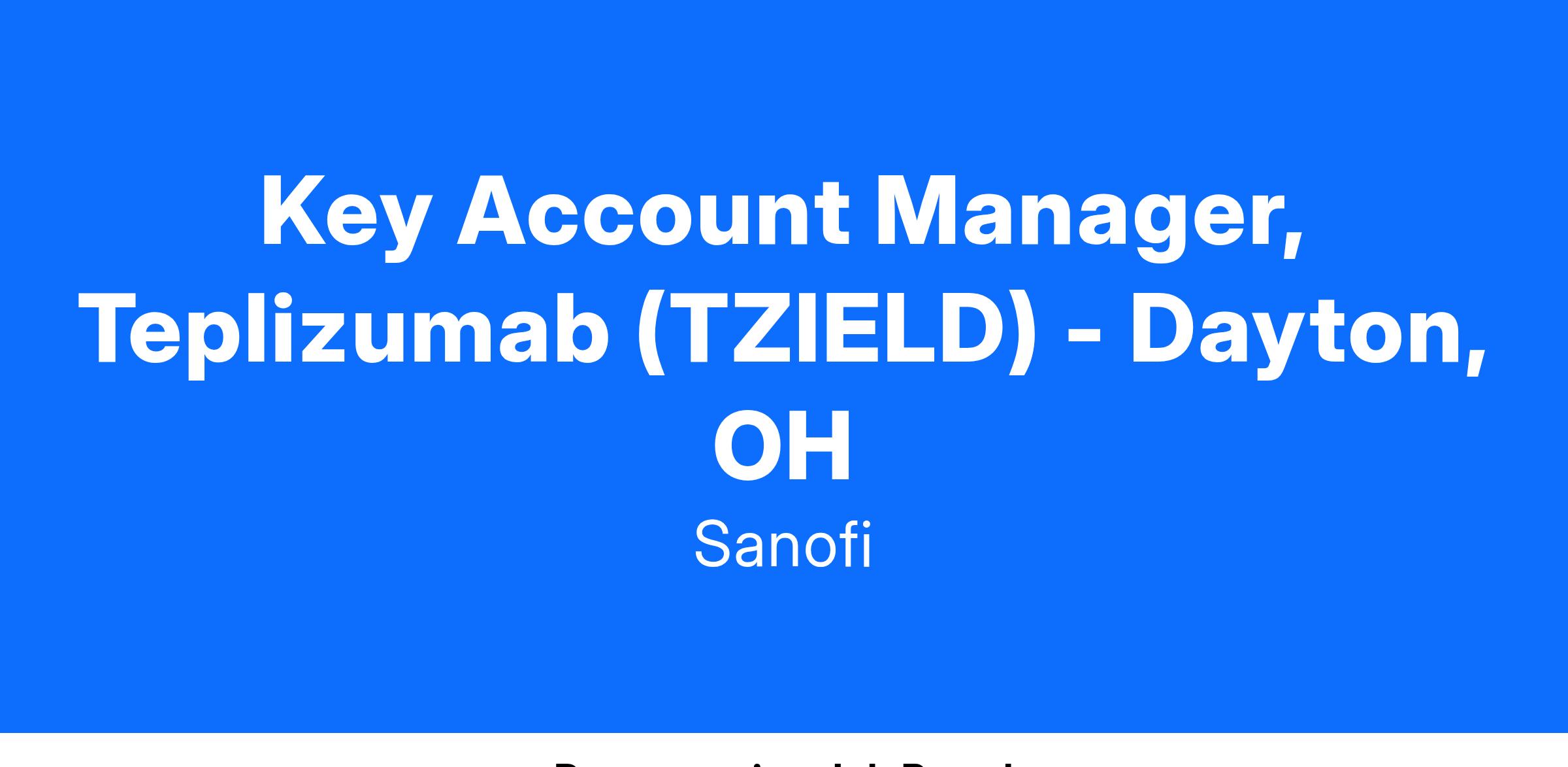 Job title: Key Account Manager, Teplizumab (TZIELD) - Dayton, OH