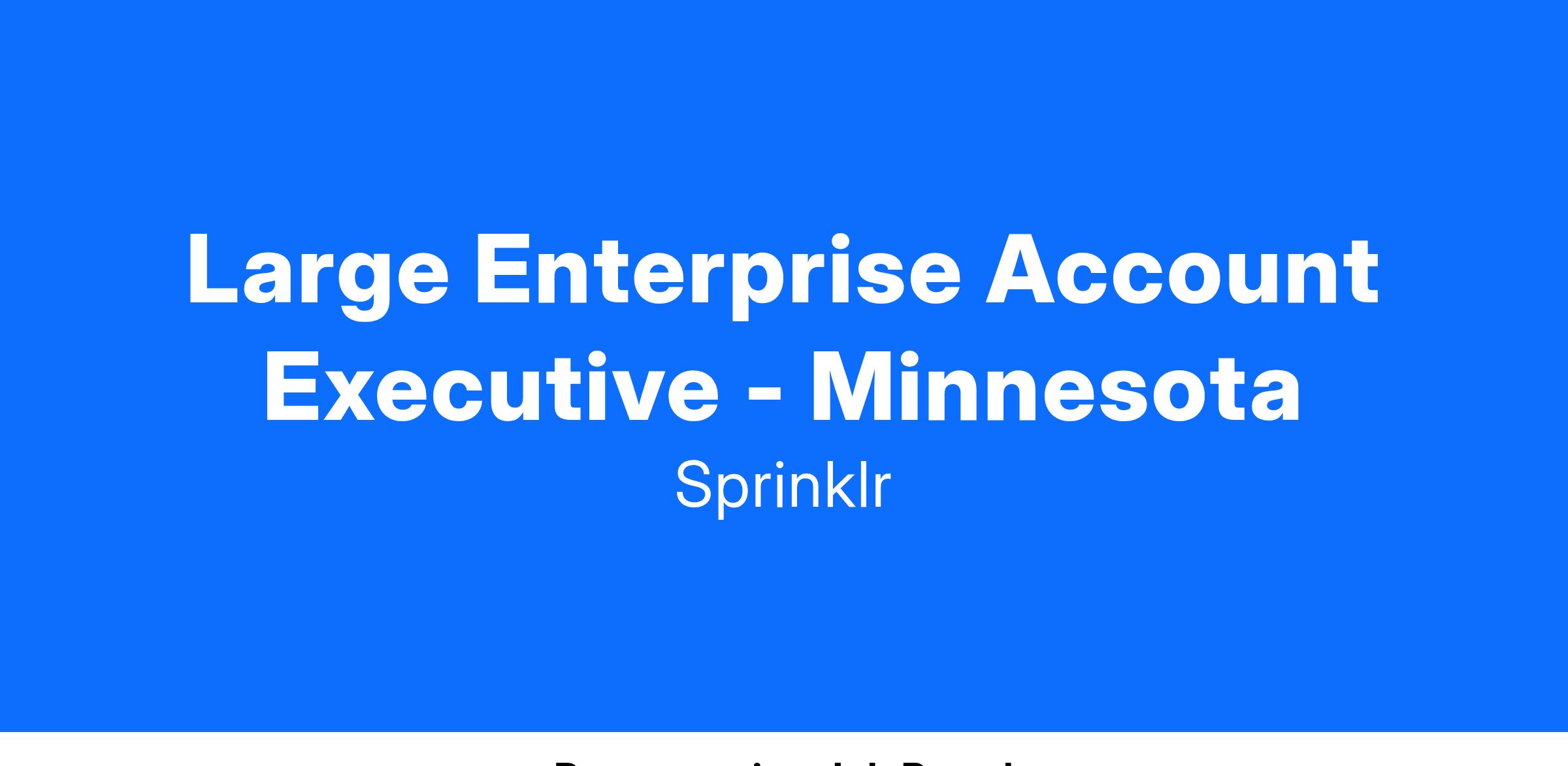 By applying to this position please understand that you are not applying to an active current opening at Sprinklr but you are adding yourself to a talent pool. We use talent pools to connect with potential candidates for future opportunities. Please see the job description below to see what we typically look for when hiring for a Large Enterprise Account Executive. We look forward to connecting with you and thank you for your interest in a position at Sprinklr!